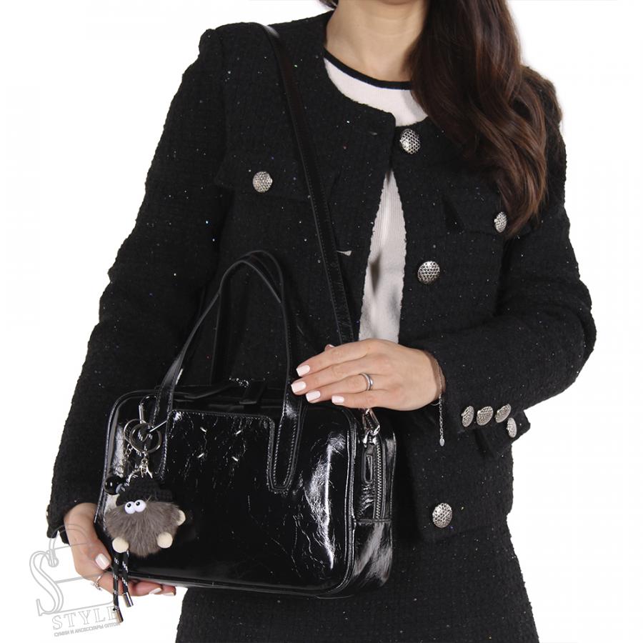 Сумка лаконичного дизайна, выполнена из натуральной кожи. Декорирована брелоком. Дополнена серебристой фурнитурой. Данная модель закрывается на молнию. Каркас полужесткий. Носится в руке или на плече за встроенные ручки. Внутри: на боковых частях карман открытый и на молнии. Снаружи: основной отдел закрывается на молнию. На передней части карман на магнитной кнопке.