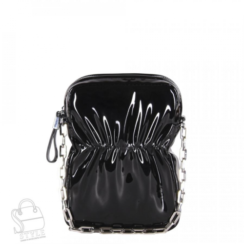 Сумка кросс-боди, выполнена из лаковой экокожи. Декорирована складками на корпусе. Дополнена  серебристой фурнитурой. Данная модель закрывается на молнию. Каркас полужесткий. Носится на плече. В комплекте имеется съёмный плечевой ремень с регулировкой длины и цепочка.