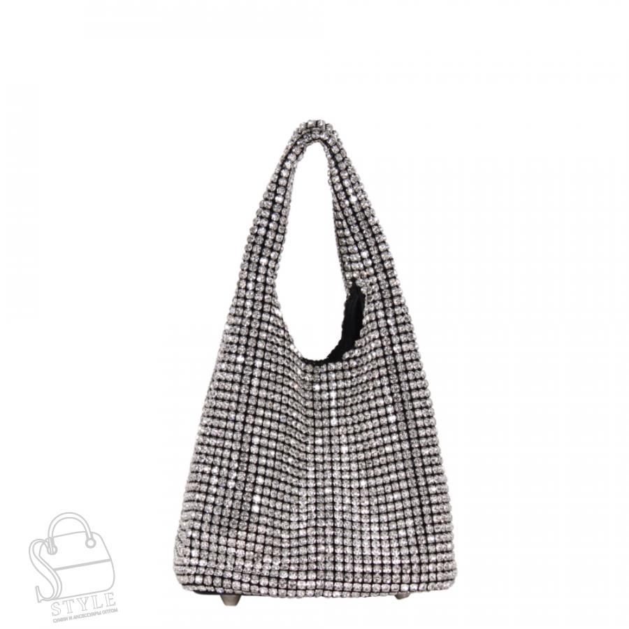 Эффектная сумка из страз, выполнена из экокожи. Дополнена серебристой фурнитурой. Данная модель закрывается на кнопку Каркас мягкий. Носится на плече за цепочку или в руке за встроенные ручки. На дне имеются ножки.