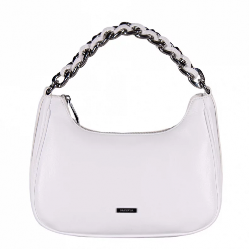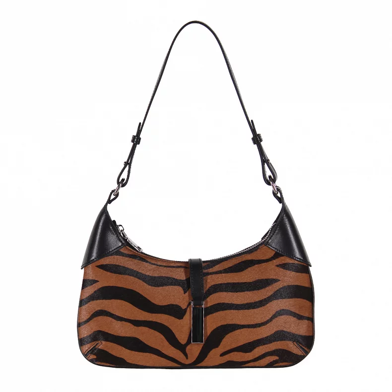 Сумка с притом выполнена из меха пони.  Дополнена серебристой фурнитурой. Данная модель закрывается на [хлястик и молнию. Каркас полужесткий. Носится на плече или в руке за ручки. В комплекте имеется длинный плечевой ремень съёмный с регулировкой длины и удлиненная ручка.