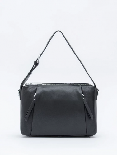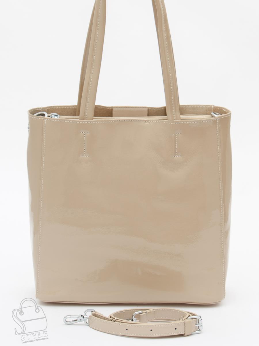 Сумка-шоппер формата А4, выполнена из натуральной лаковой кожи. Дополнена серебристой фурнитурой. Данная модель закрывается на молнию. Каркас полужёсткий. Носится сумка в руке за или на плече. В комплекте имеется встроенные удлиненные ручки и плечевой ремень с регулировкой длины. На дне есть ножки.