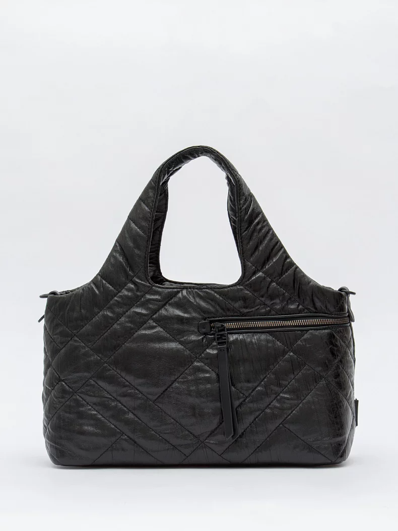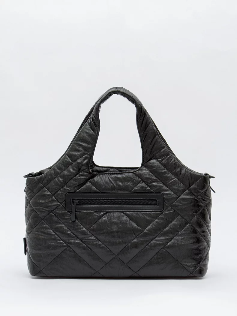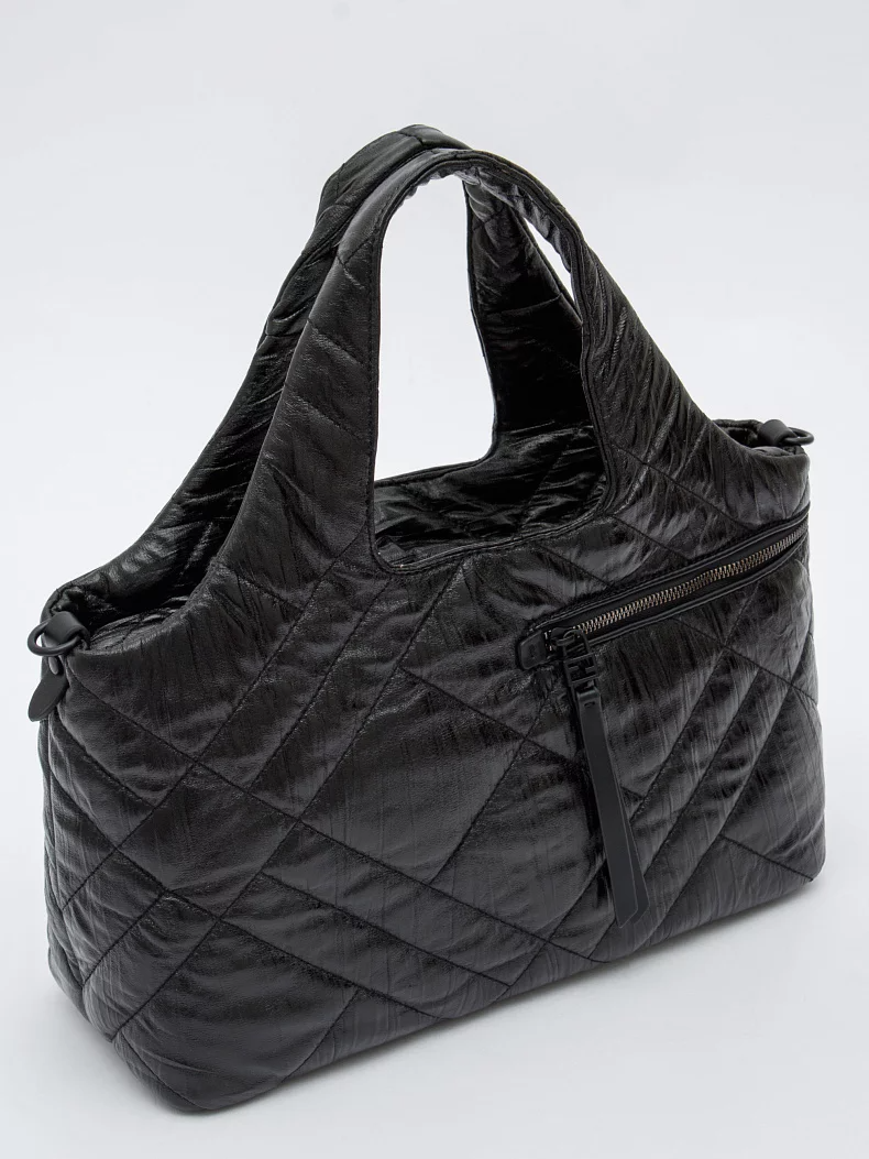 Сумка-дутик, выполнена из экокожи. Дополнена черной фурнитурой. Данная модель закрывается на молнию, носится в руке за встроенную ручку или на плече на плече с помощью ремня. В комплекте предусмотрен ремень-стропа с регулировкой длины. Каркас мягкий.