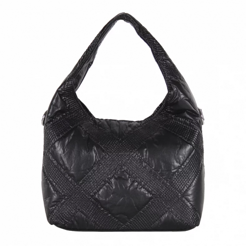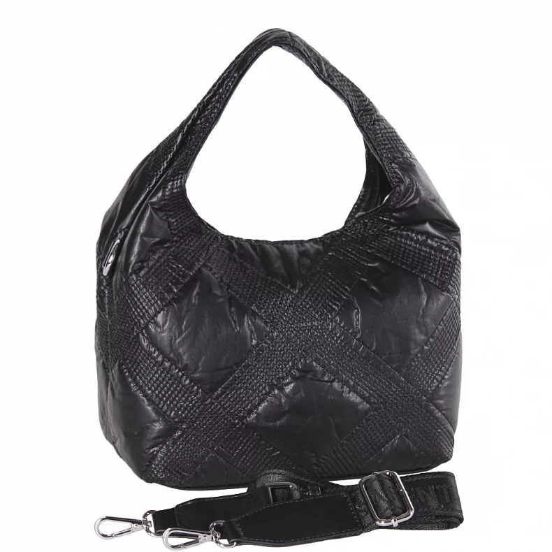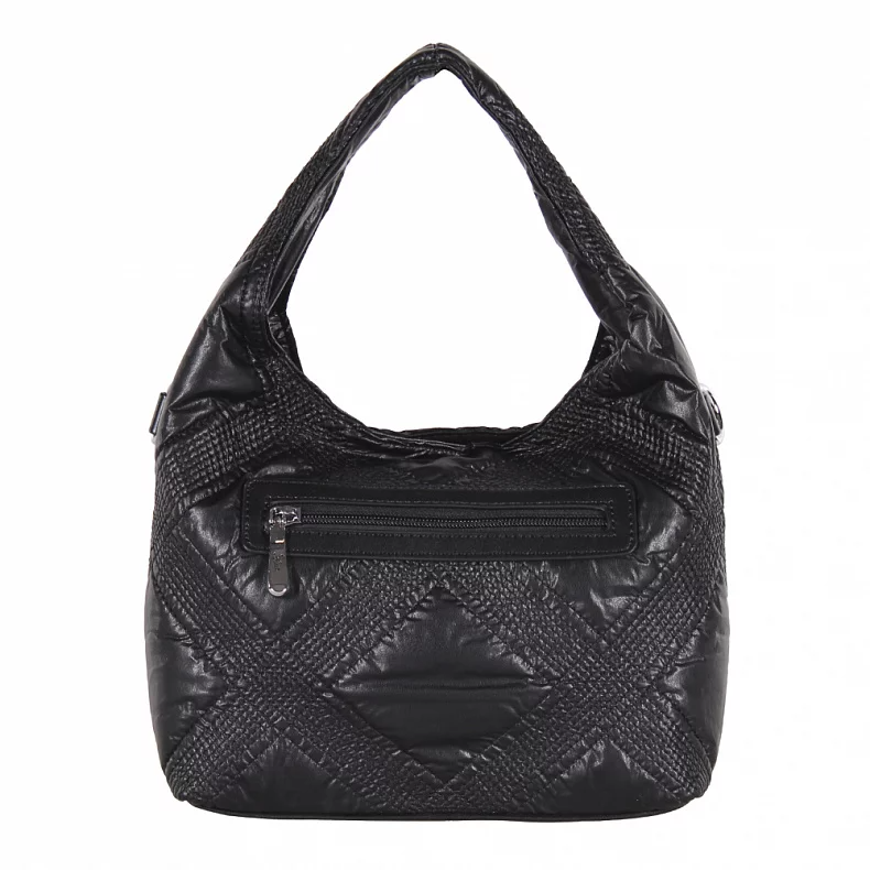 Модель со стежкой, выполнена из экокожи. Дополнена серебристой фурнитурой. Данная модель закрывается на молнию, носится на плече или в руке. В комплекте имеется ремень-стропа с регулировкой длины и встроенная ручка. Каркас мягкий.