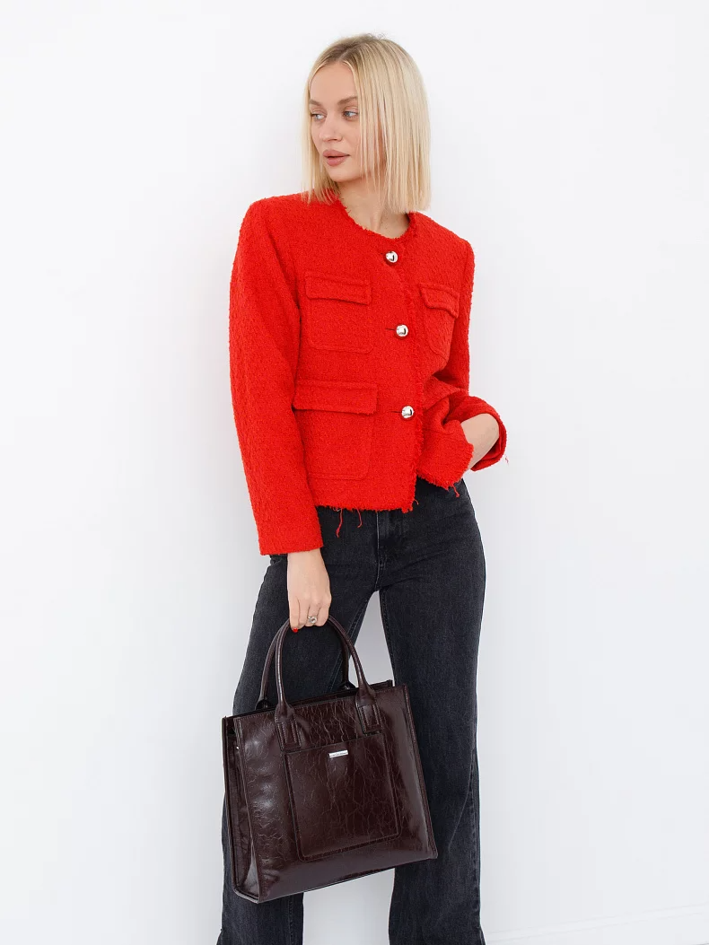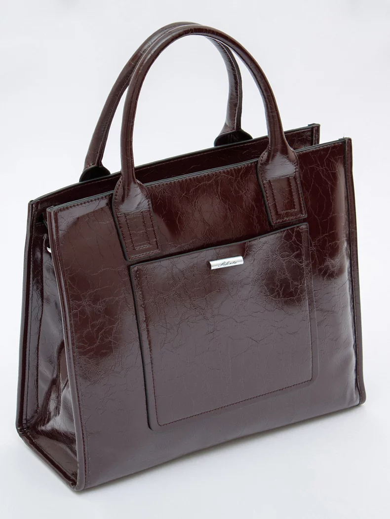 Сумка-тоут, выполнена из экокожи. Дополнена серебристой фурнитурой. Данная модель закрывается на молнию. Каркас полужесткий. Носится  в руке за встроенные ручки или через плечо. В комплекте имеется съемный ремень с регулировкой длины.