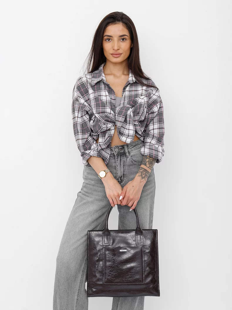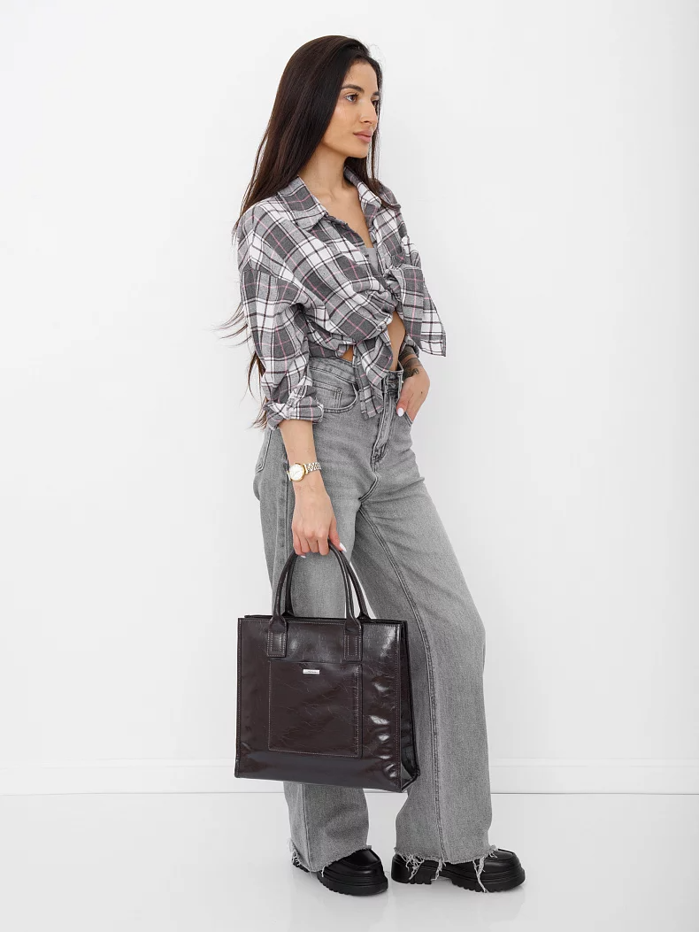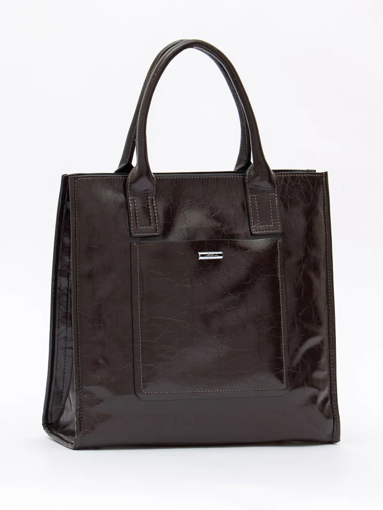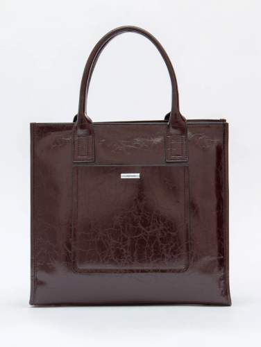Сумка-тоут, выполнена из экокожи. Дополнена серебристой фурнитурой. Данная модель закрывается на молнию. Каркас полужесткий. Носится  в руке за встроенные ручки или через плечо. В комплекте имеется съемный ремень с регулировкой длины.