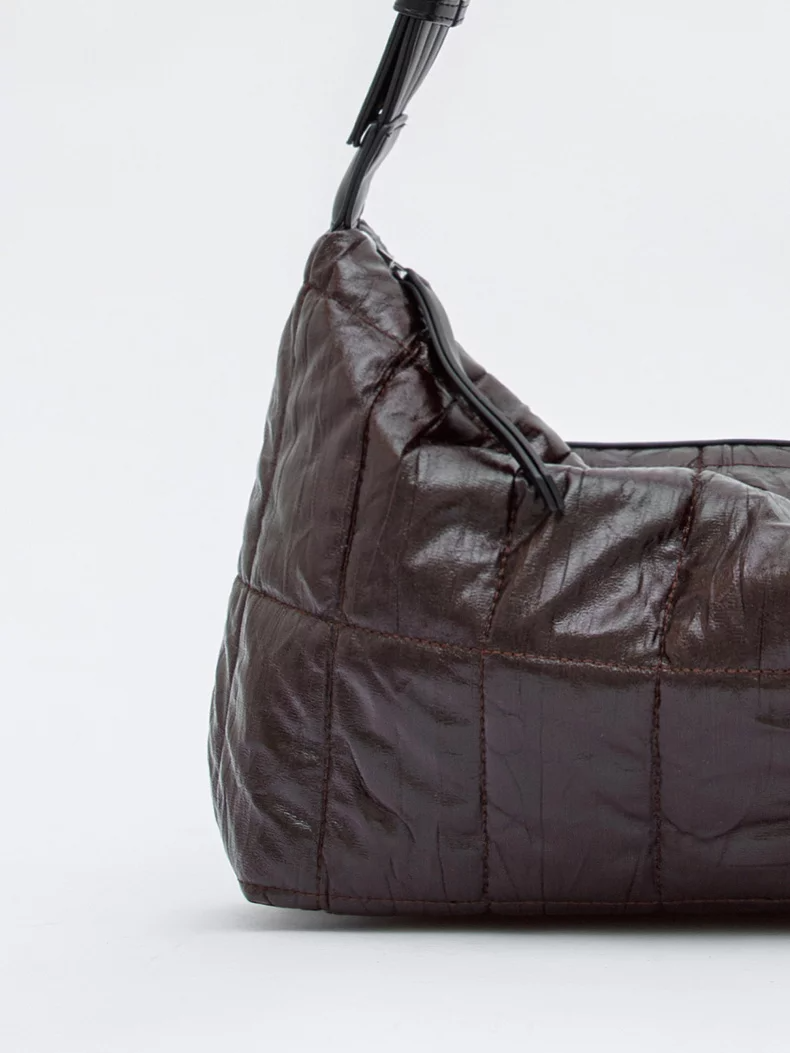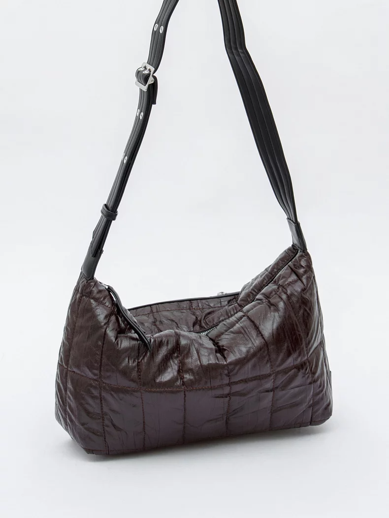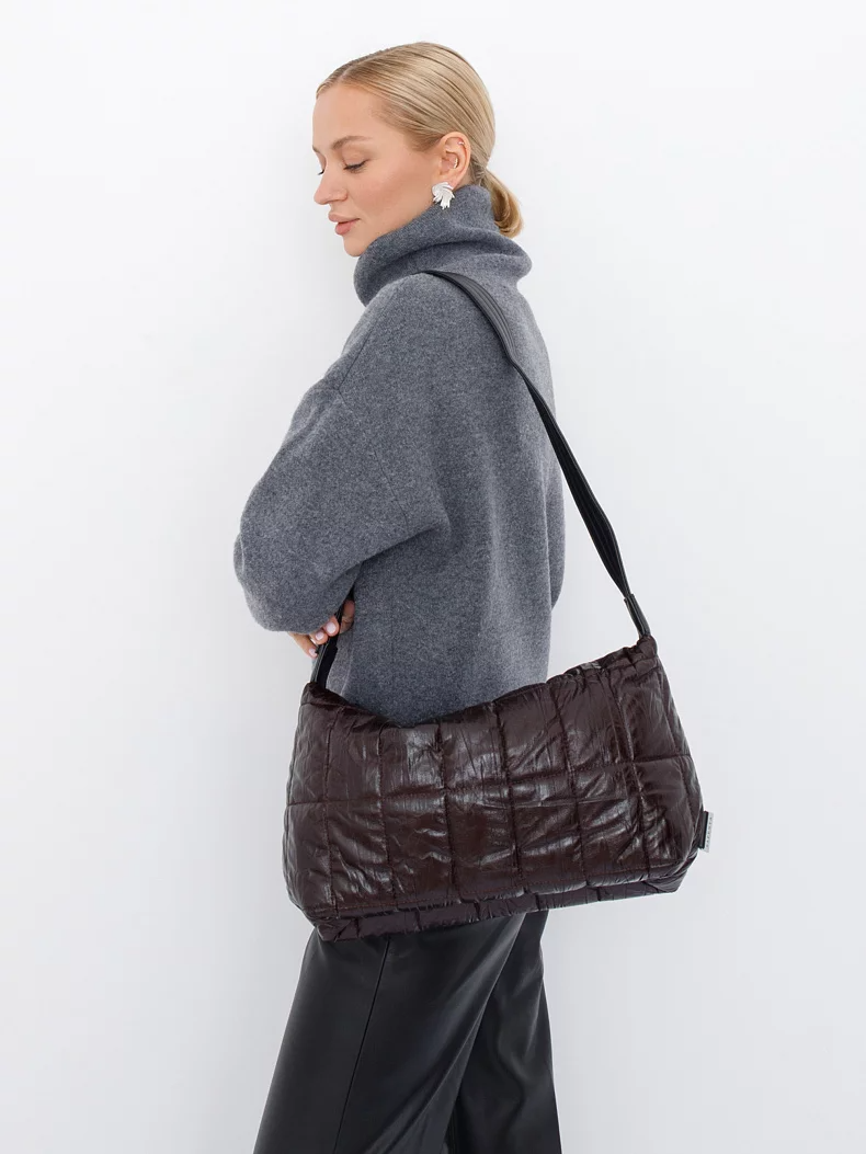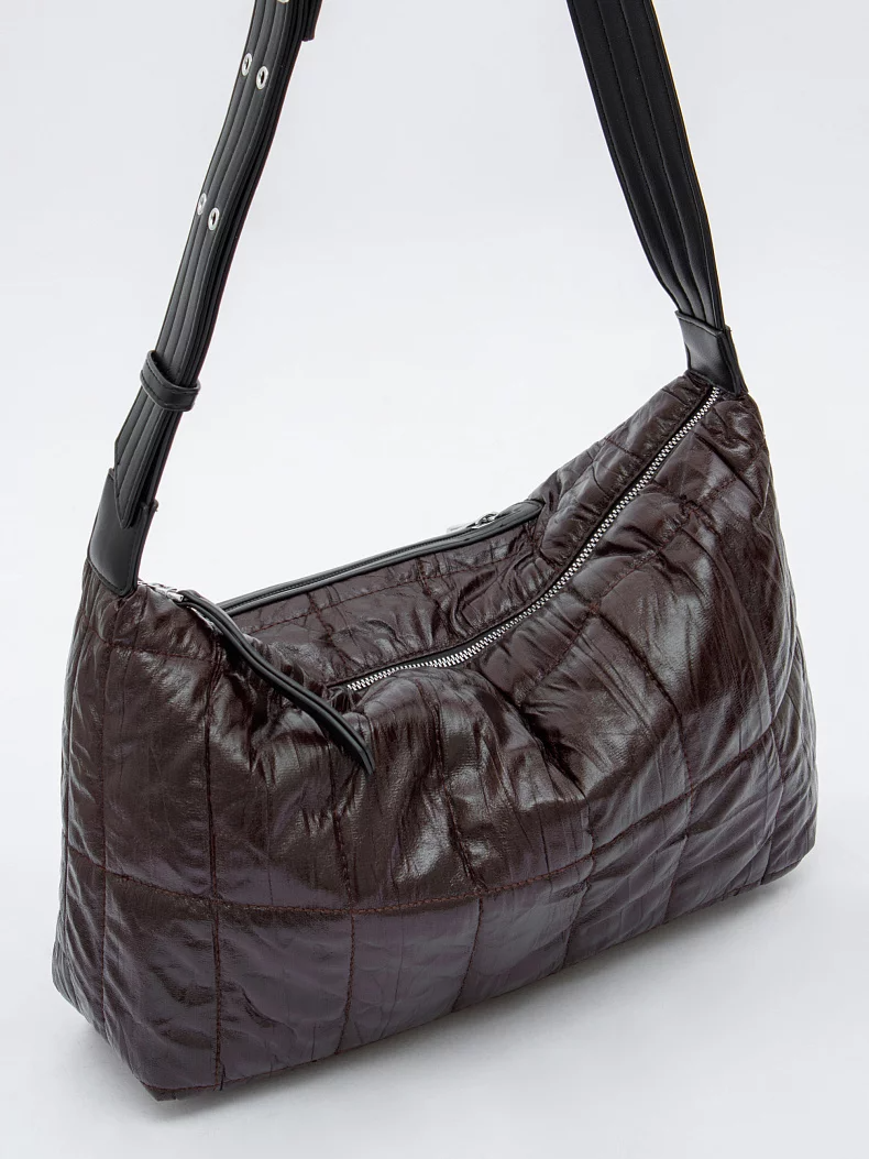 Сумка-дутик, выполнена из экокожи. Дополнена серебристой фурнитурой. Данная модель закрывается на молнии, носится в руке или на плече за встроенный ремень с регулировкой длины. Каркас мягкий.