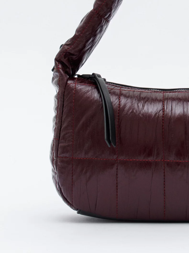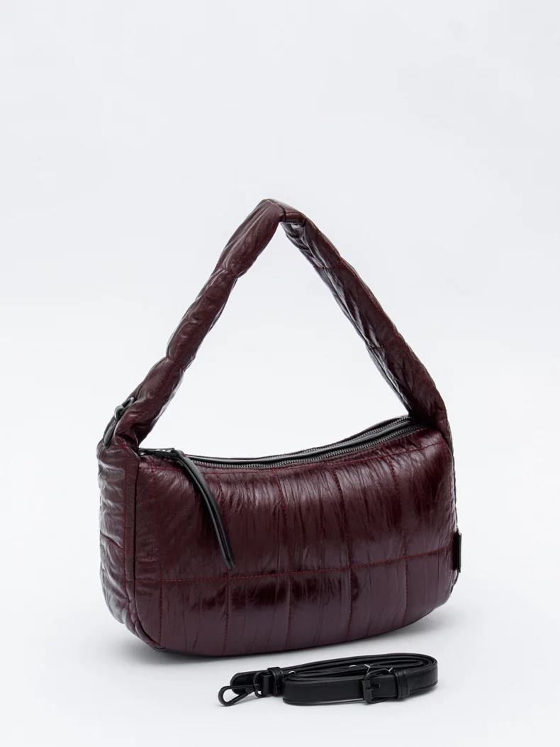 Сумка-дутик, выполнена из экокожи. Дополнена черной фурнитурой. Данная модель закрывается на молнию, носится в руке за встроенную ручку, или на плече. Встроенный ремень регулируется. Каркас мягкий.