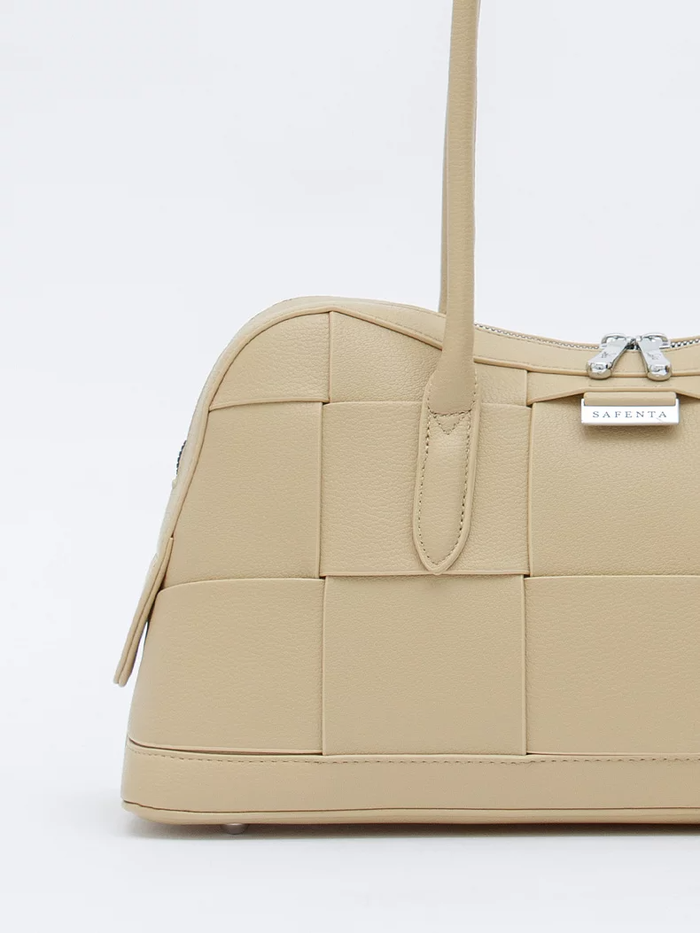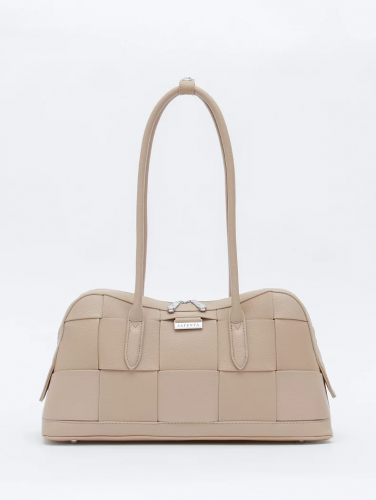 Сумка-плетенка, выполнена из экокожи. Дополнена серебристой фурнитурой. Данная модель закрывается на молнию, носится в руке за встроенные ручки с фиксацией. Каркас полужесткий.