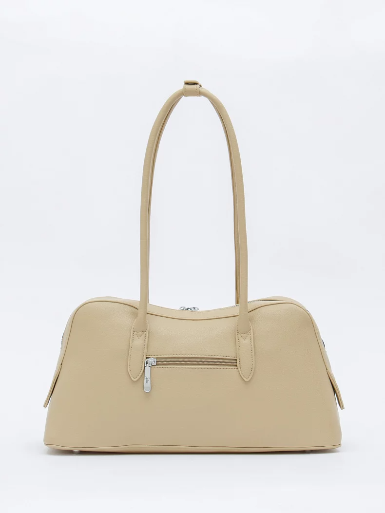 Внутри: подкладочная ткань, на боковых стенках есть два  кармана на молнии и два открытых.