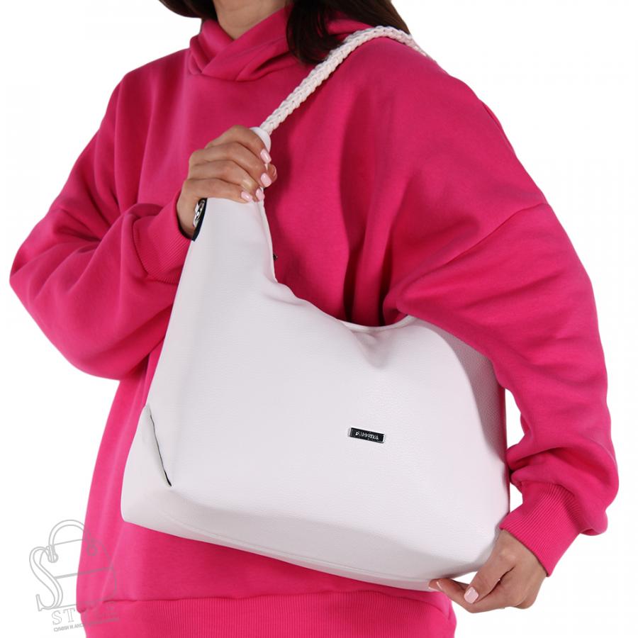 Удобная сумка-хобо, выполнена из экокожи. Дополнена серебристой фурнитурой. Данная модель закрывается на молнию. Каркас мягкий. Сумка носится в руке за ручку или на плече за ремень.