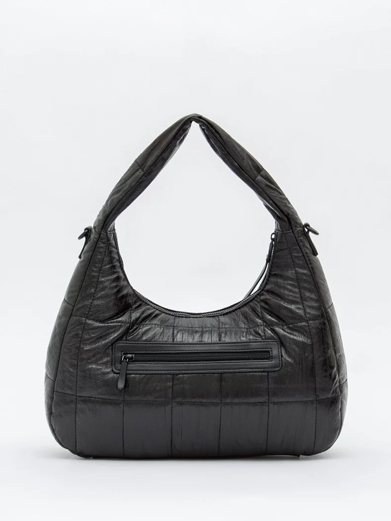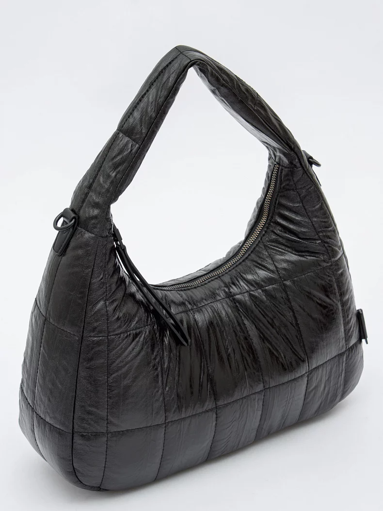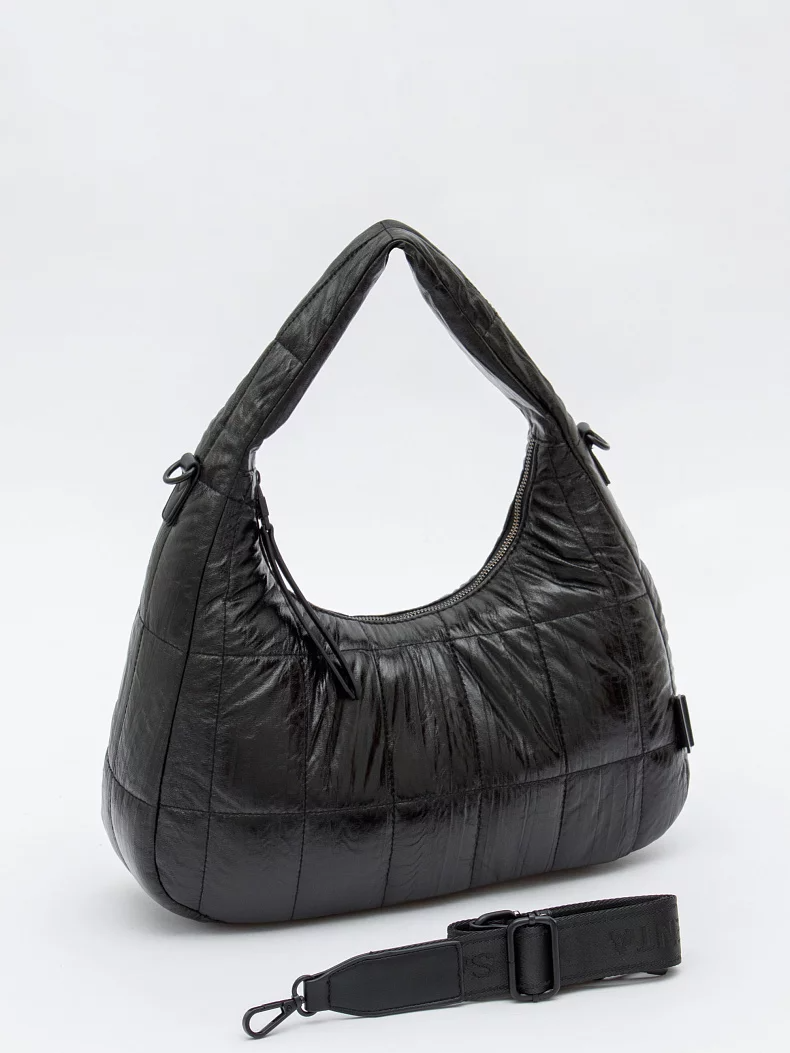 Сумка-дутик, выполнена из экокожи. Дополнена черной фурнитурой. Данная модель закрывается на молнию, носится в руке за встроенную ручку или на плече с помощью ремня. В комплекте предусмотрен ремень-стропа с регулировкой длины. Каркас мягкий.