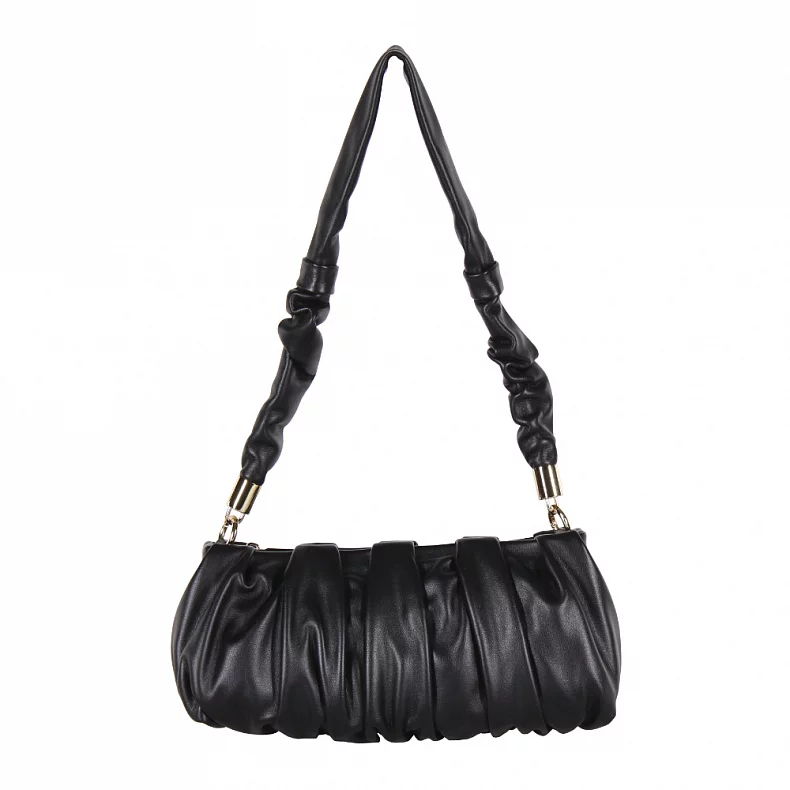 Модель со складками ,выполнена из экокожи. Дополнена золотистой фурнитурой. Данная модель закрывается на молнию. Каркас мягкий Носится на плече. В комплекте имеется съемный ремень и удлиненная ручка.