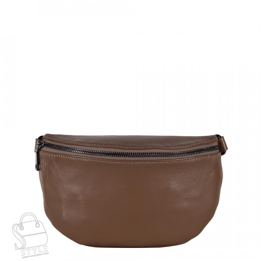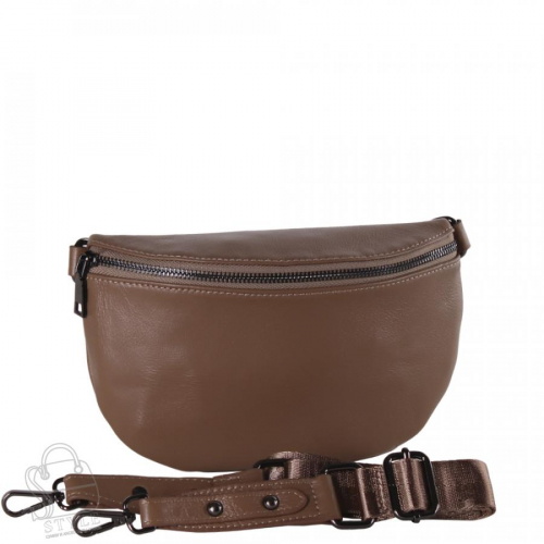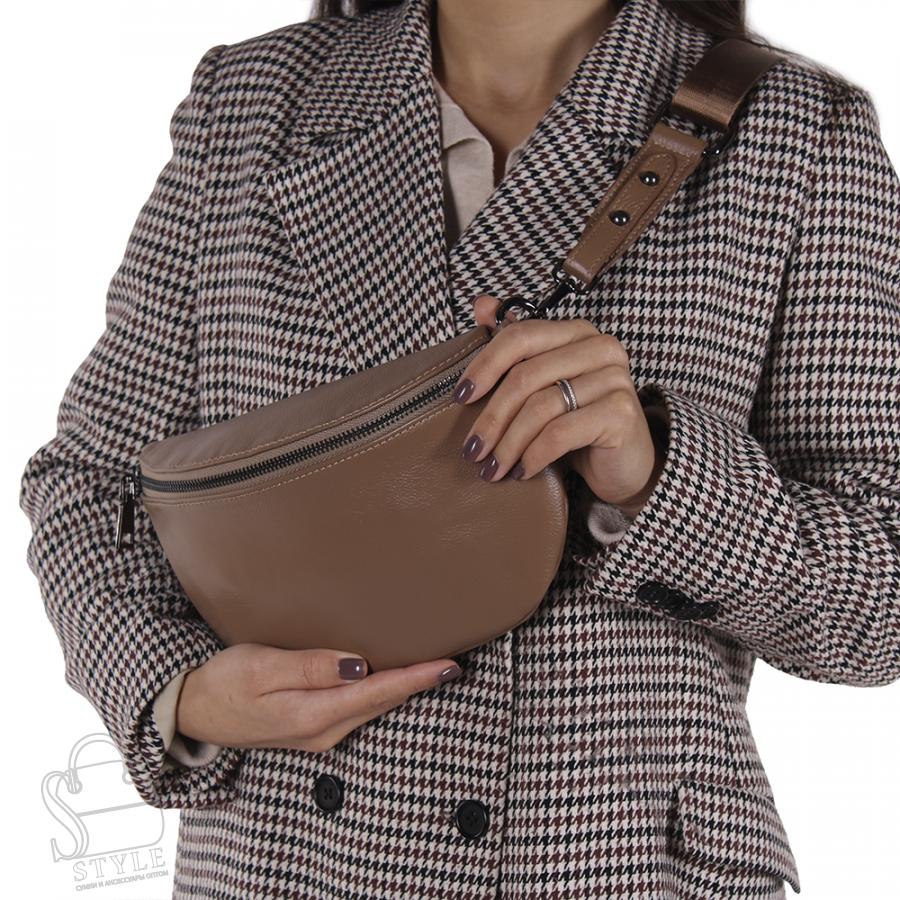 Сумка-бананка, выполнена из натуральной кожи.  Дополнена фурнитурой темное серебро. Данная модель закрывается на молнию. Каркас полужесткий. Носится на плече. В комплекте имеется съёмный ремень-стропа с регулировкой длины.