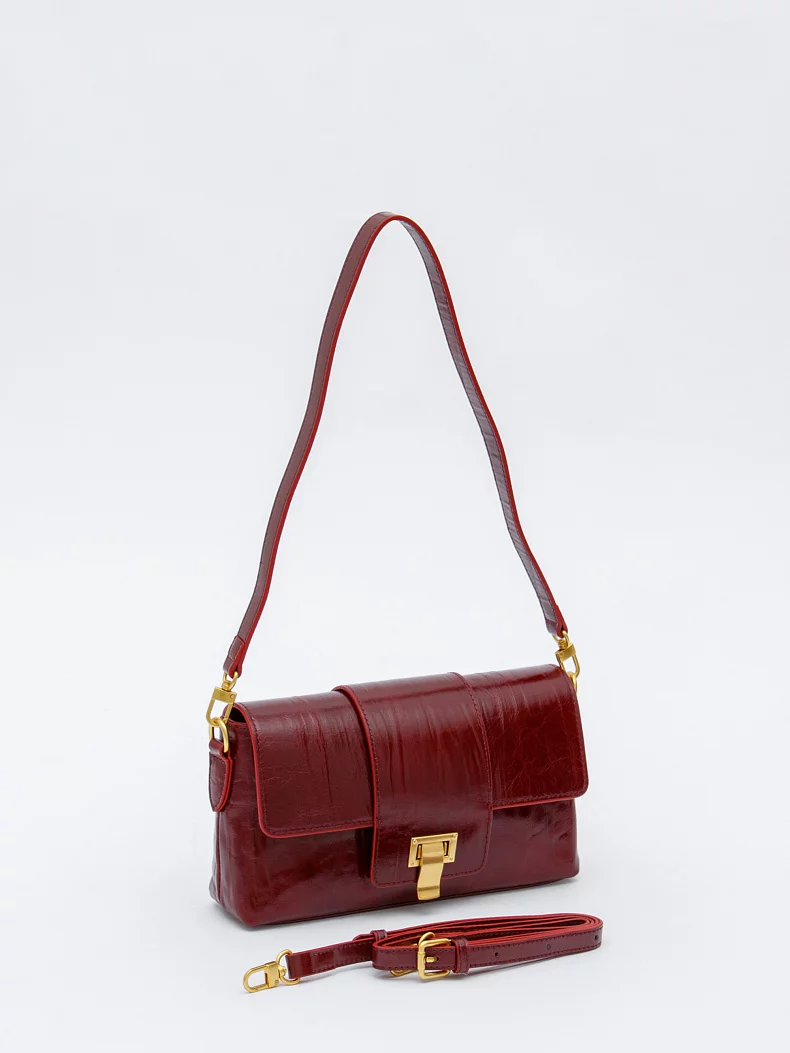 Трендовая модель кросс-боди, выполнена из кожи. Дополнена матовой золотистой фурнитурой. Данная модель закрывается на клапан. Каркас полужесткий. Носится в руке за съемную удлиненную ручку или на плече. В комплекте имеется съемный ремень с регулировкой длины.