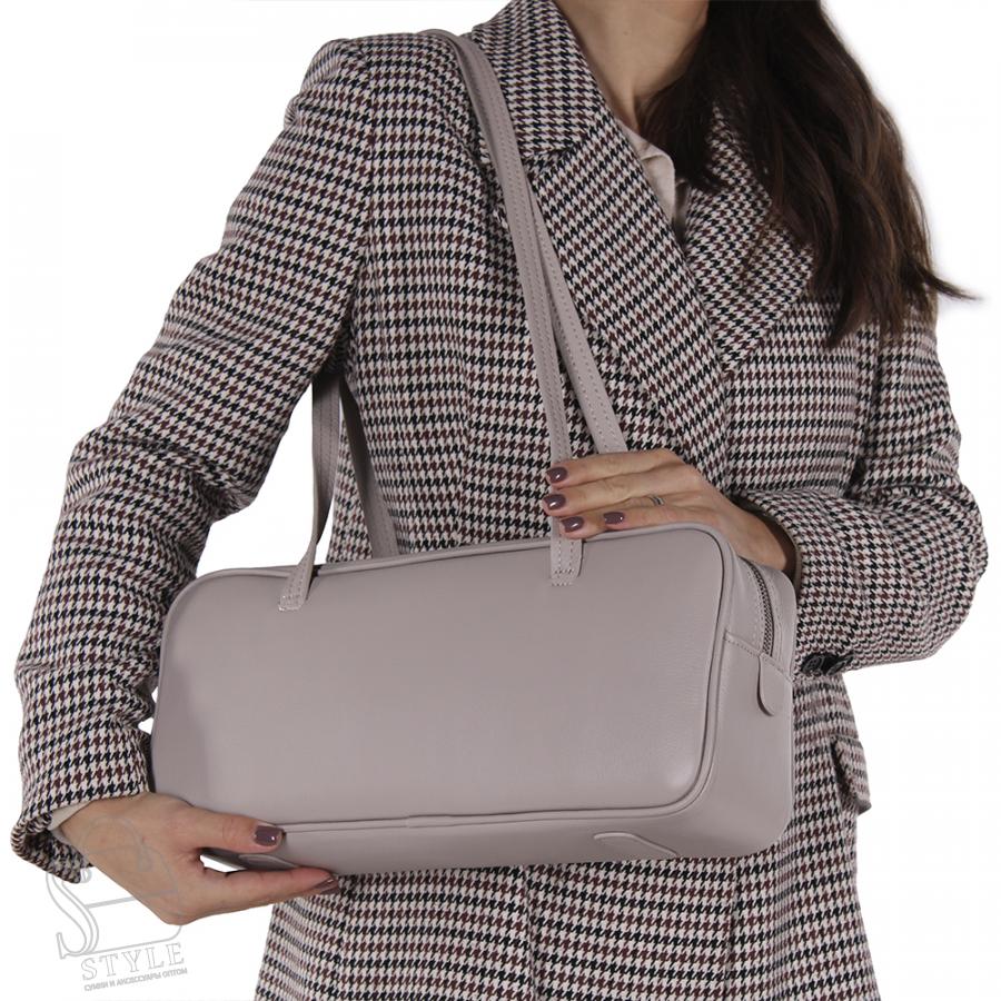 Модель-такса выполнена из натуральной кожи. Дополнена серебристой фурнитурой. Данная модель закрывается на молнию. Каркас полужесткий. Носится на плече за удлиненные ручки. На дне имеется имитация ножек.