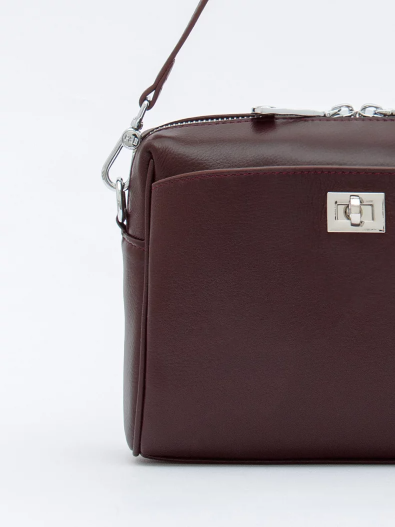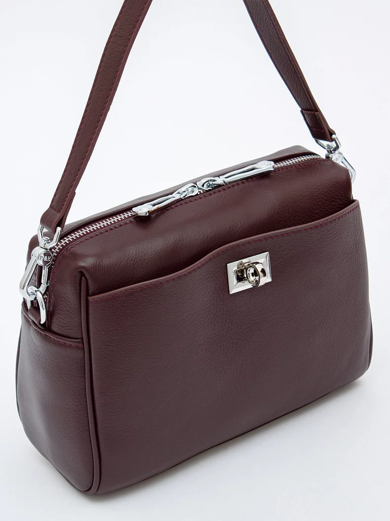 Лаконичная модель, выполнена из кожи. Дополнена серебристой фурнитурой. Данная модель закрывается на молнию. Каркас полужесткий. Носится в руке за съемную ручку или на плече. В комплекте имеется съемный ремень с регулировкой длины.