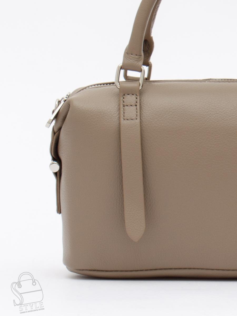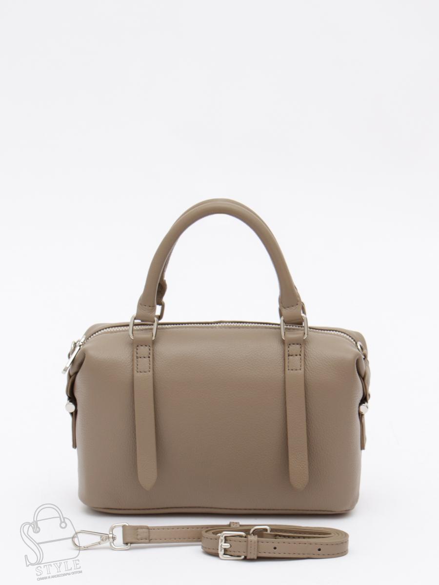 Базовая модель, выполнена из натуральной кожи.  Декорирована элементами на корпусе. Дополнена серебристой фурнитурой. Данная модель закрывается на молнию. Каркас мягкий. Носится в руке за встроенные ручки или на плече. В комплекте съемный ремень с регулировкой длины.