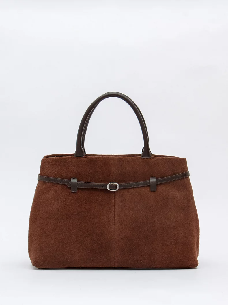 Стильная модель, выполнена из натуральной замши. Дополнена серебристой фурнитурой. Декорирована ремнем на корпусе. Основной отдел закрывается на молнию. Сумка носится в руке за строенные ручки или на плече, в комплекте имеется съемный ремень с регулировкой длины. Каркас мягкий. По бокам имеются расширители.