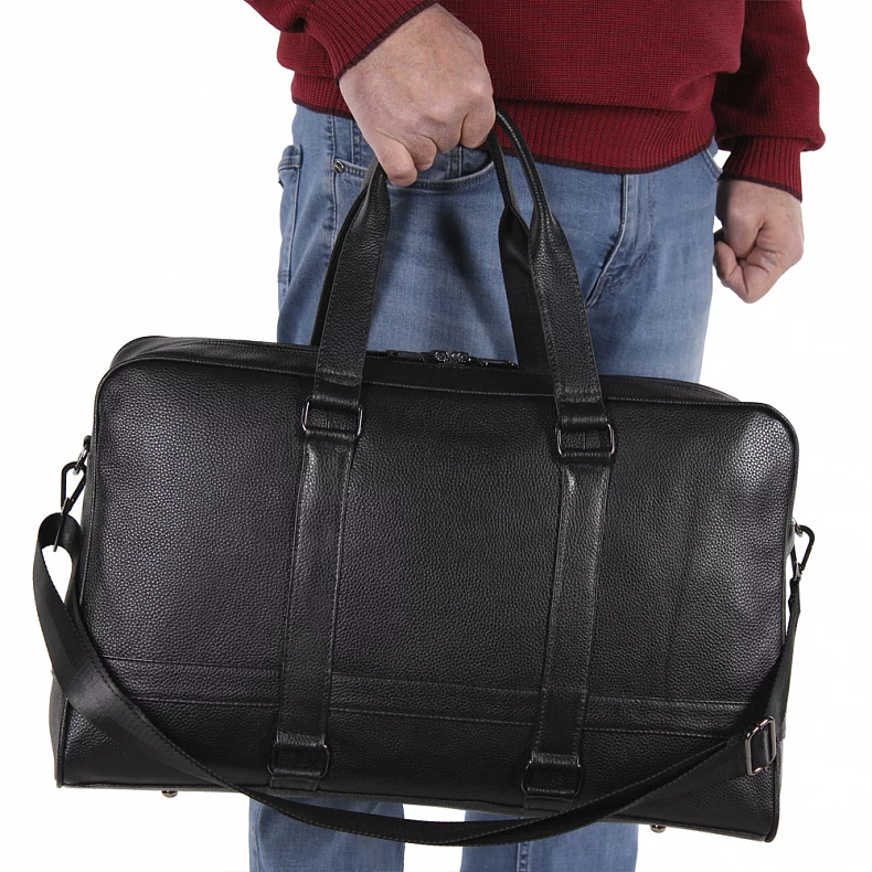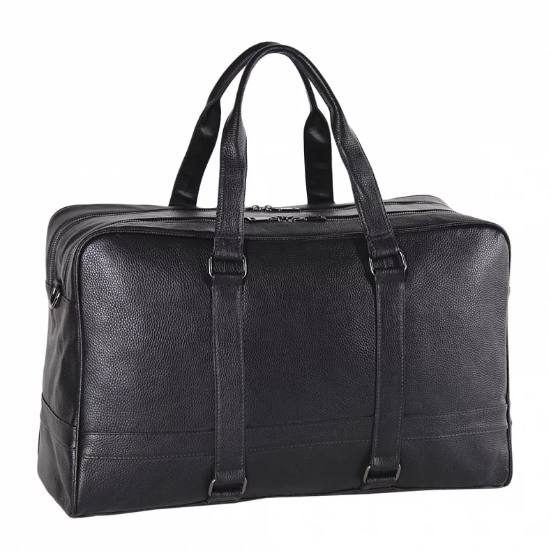 Дорожная сумка выполнена из натуральной кожи. Дополнена серебристой темной фурнитурой. Данная модель закрывается на молнии, носится в руке за встроенные ручки или на плече с помощью ремня. В комплекте предусмотрен ремень-стропа с регулировкой длины. Каркас полужесткий.