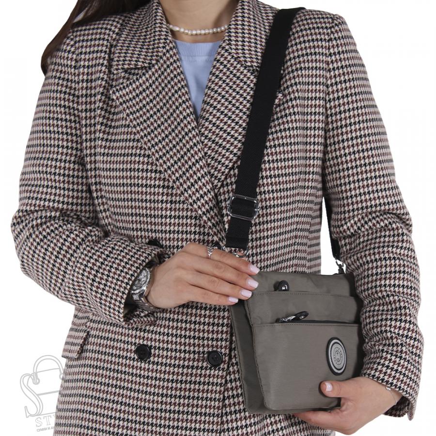 Сумка кросс-боди, выполнена из текстиля.  Дополнена серебристой фурнитурой. Данная модель закрывается на молнию. Каркас мягкий. Носится на плече. В комплекте ремень-стропа регулируется по длине.
