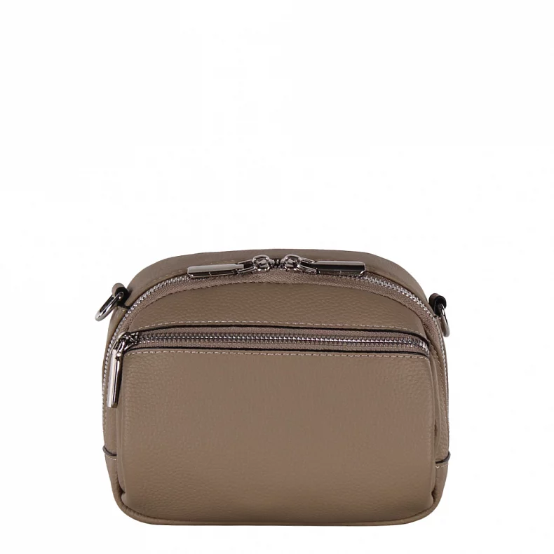 Сумка кросс-боди в стиле спорт-шик, выполнена из натуральной кожи. Дополнена серебристой фурнитурой. Данная модель закрывается на молнию. Каркас полужесткий. Носится в руке или  через плечо. В комплекте съемный ремень с регулировкой длины и ремень-стропа.