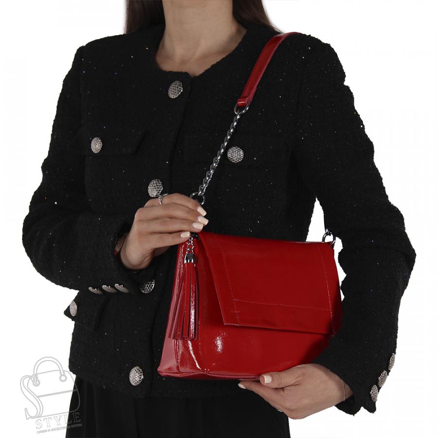 Сумка кросс-боди, выполнена из натуральной лаковой кожи. Декорирована кисточкой. Дополнена серебристой фурнитурой. Данная модель закрывается на клапан. Каркас полужесткий. Носится на плече. В комплекте имеется съёмный плечевой ремень с регулировкой длины. А так же в руке за съемную ручку.