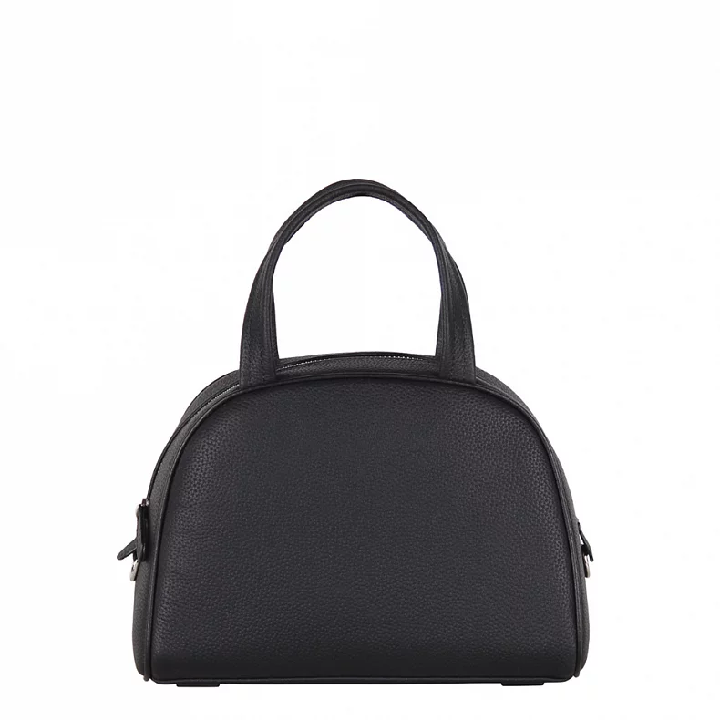 Миниатюрная сумочка в лаконичном дизайне, выполнена из натуральной кожи.  Дополнена серебристой фурнитурой. Данная модель закрывается на молнию. Каркас полужесткий. Носится в руке за встроенные ручки или на плече. В комплекте имеется съемный ремень с регулировкой длины. Каркас полужесткий.
