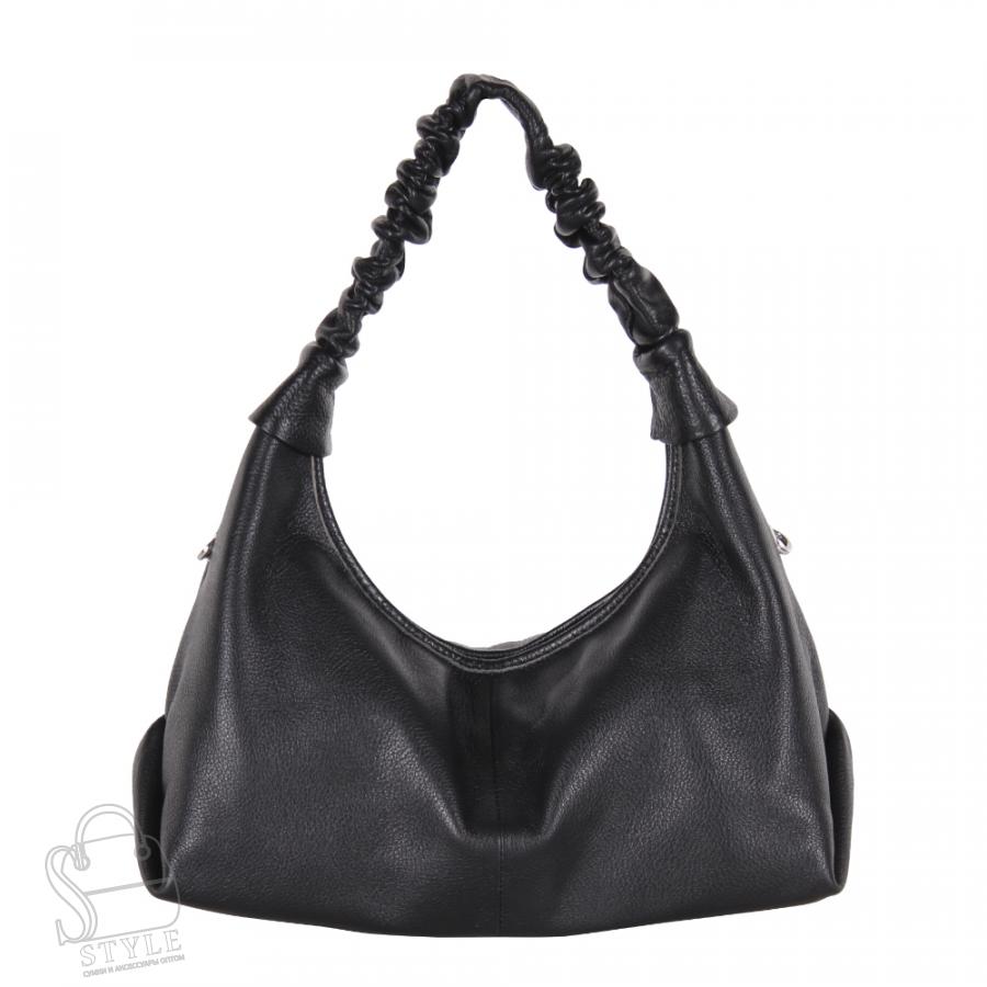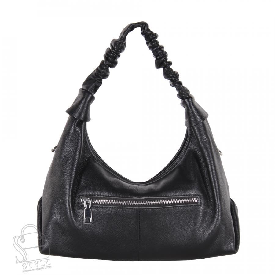 Модель в стиле хобо, выполнена из кожи. Декорирована складками на ручке. Дополнена серебристой фурнитурой. Данная модель закрывается на молнию. Каркас мягкий. Носится в руке за встроенную ручку или на плече. В комплекте имеется съемный ремень с регулировкой длины.