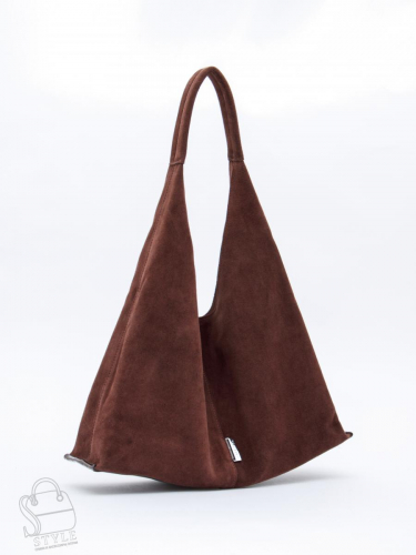 Вместительная сумка-хобо, выполнена из замши. Дополнена серебристой фурнитурой. Декорирована логотипом на передней части.  Данная модель закрывается на кнопку. Носится в руке или на плече за встроенную ручку. Каркас мягкий.