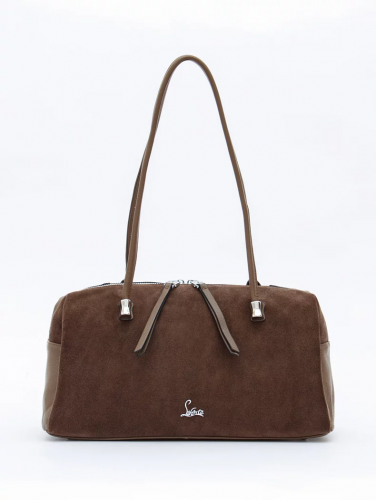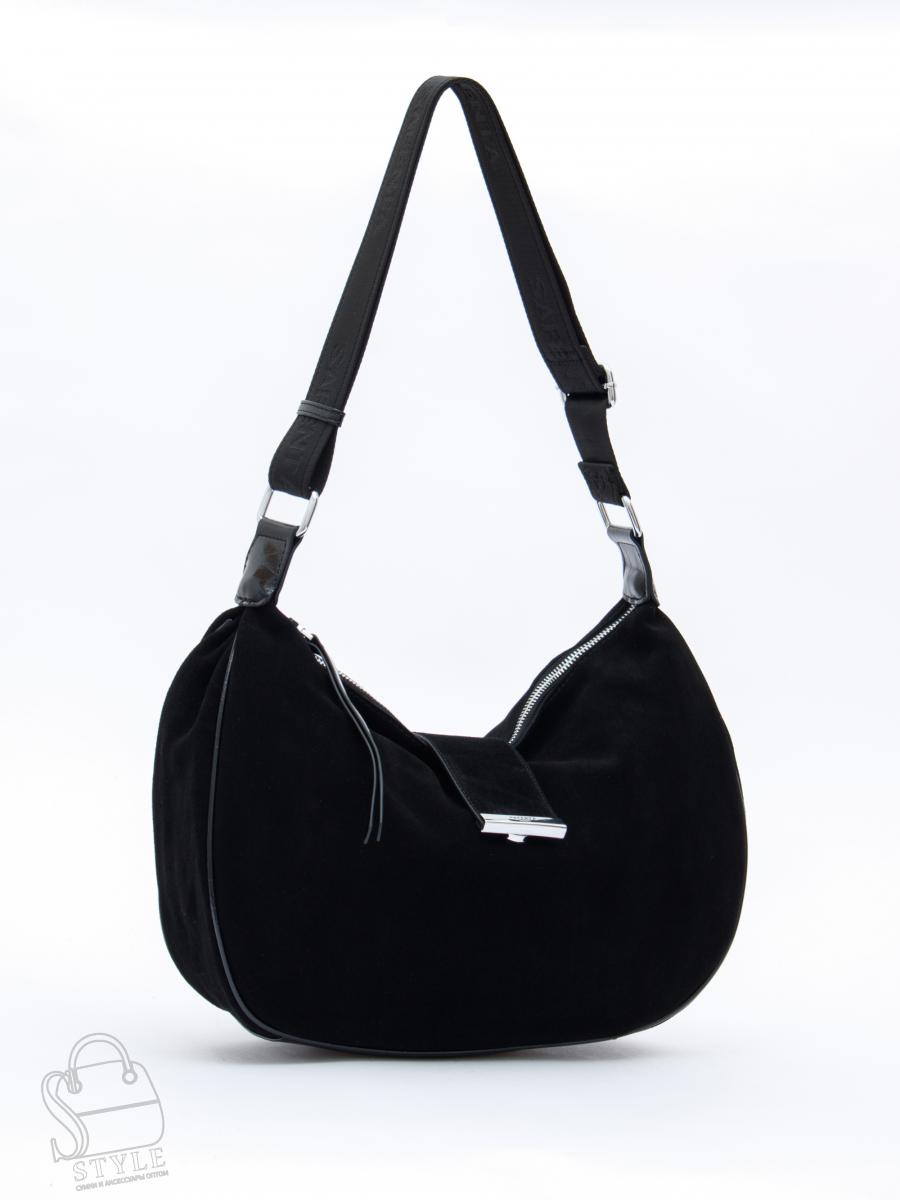 Сумка-хобо, выполнена из замши. Дополнена серебристой фурнитурой. Декорирована хлястиком. Данная модель закрывается на молнию, носится в руке или на плече за встроенный ремень-стропа. Ремень регулируется по длине. Каркас мягкий.