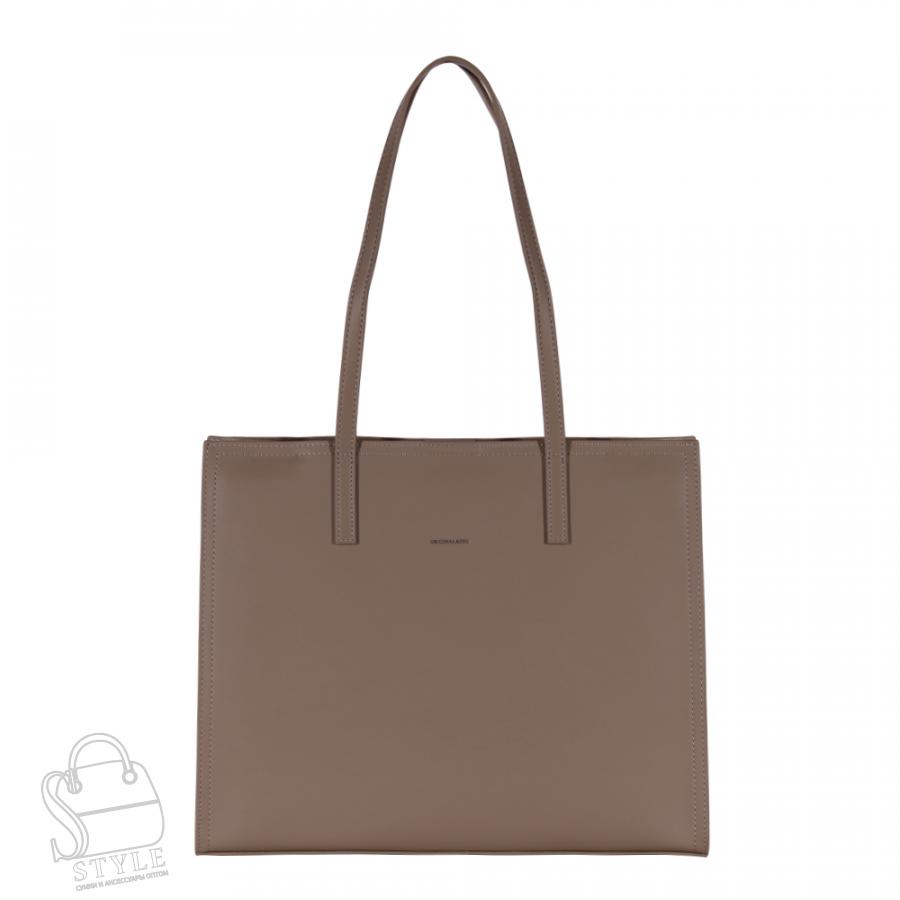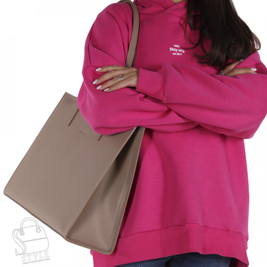 Стильная модель-тоут, выполнена из натуральной кожи. Дополнена серебристой фурнитурой. Данная модель закрывается на молнии. Каркас жесткий. Носится в руке или на плече за встроенные удлиненные ручки.