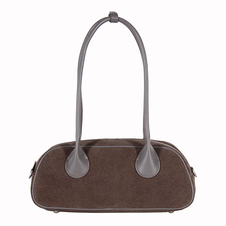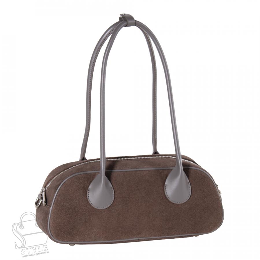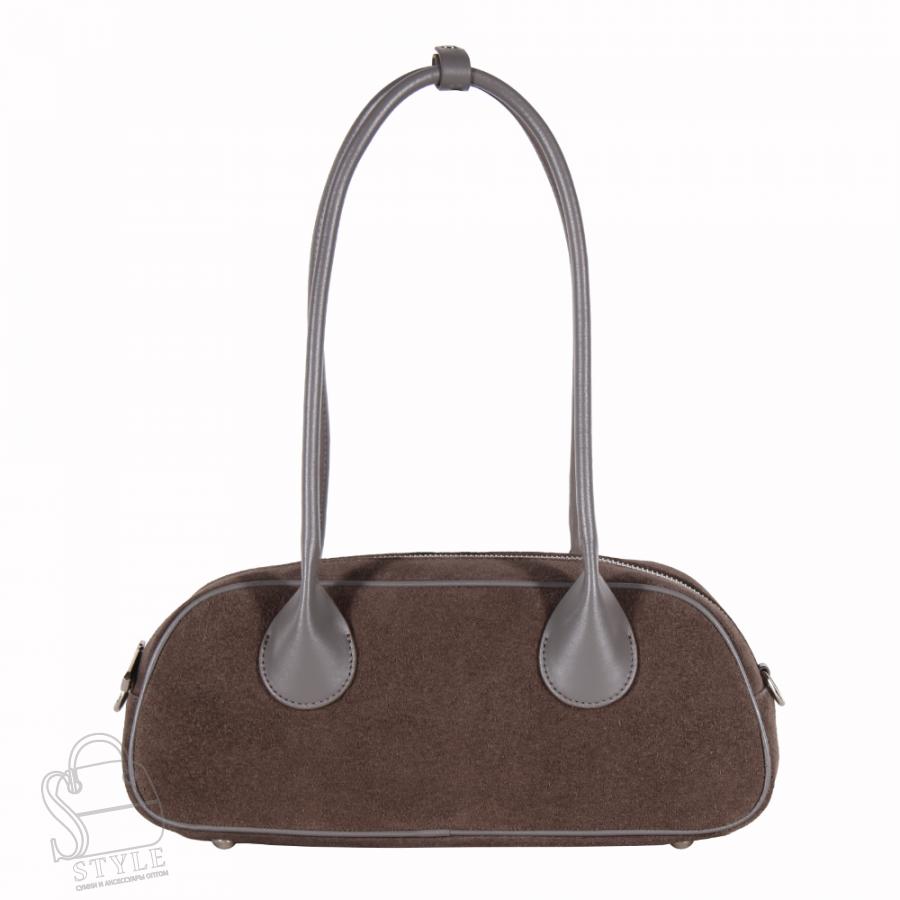 Актуальная базовая модель, выполнена из замши.  Дополнена серебристой фурнитурой. Данная модель закрывается на молнию, носится в руке или на плече. В комплекте ремень с регулировкой длины. Каркас полужесткий.