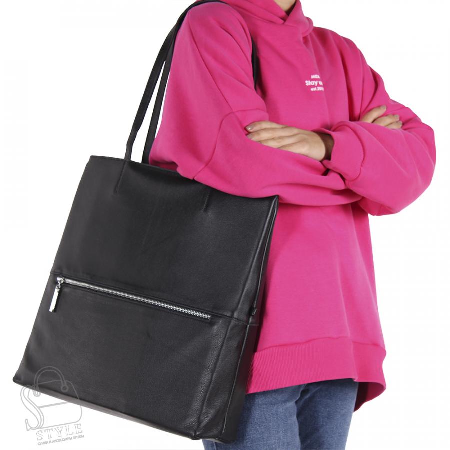 Сумка-шоппер, выполнена из натуральной кожи.  Дополнена серебристой фурнитурой. Данная модель закрывается на молнию, носится в руке или на плече. Имеются встроенные удлиненные ручки. Каркас мягкий.