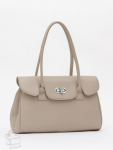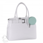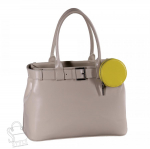 Базовая сумка, выполнена из натуральной кожи. Декорирована застежками на корпусе. Дополнена серебристой фурнитурой. Данная модель закрывается на молнию, носится в руке за встроенные ручки или на плече. В комплекте имеется ремень с регулировки длины. Каркас жесткий.