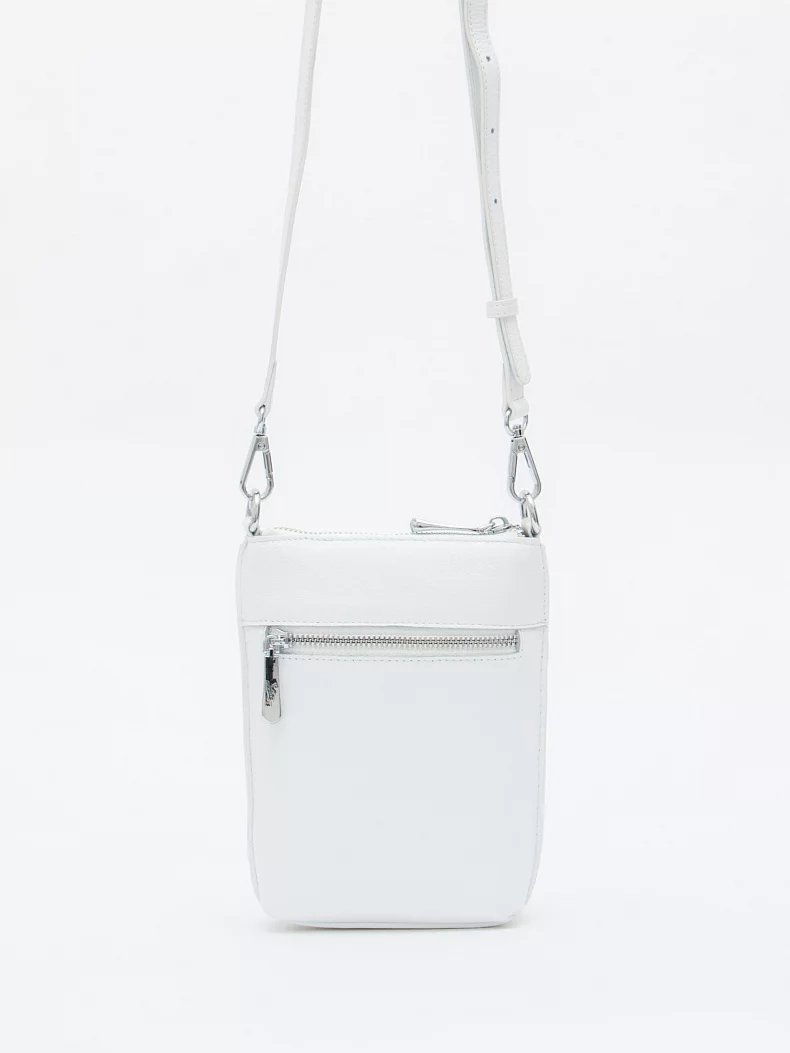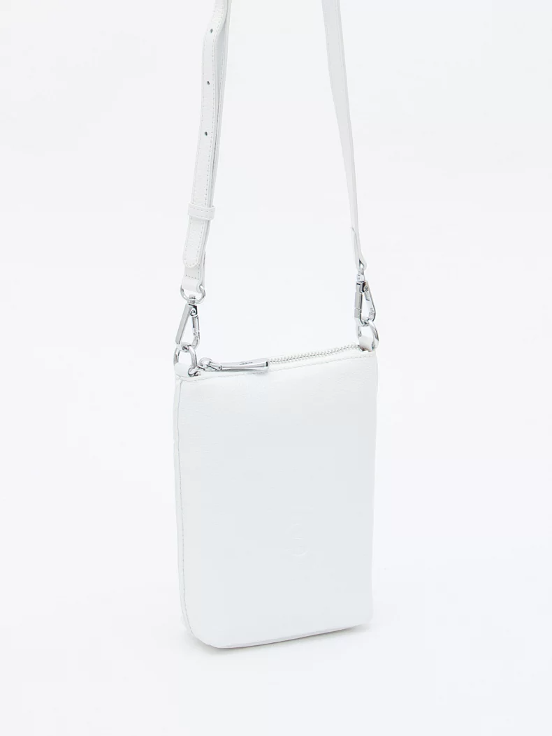 Сумка кросс-боди, выполнена из натуральной кожи. Декорирована логотипом на передней части. Дополнена серебристой фурнитурой. Данная модель закрывается на молнию. Каркас полужесткий. Носится на плече или через плечо. В комплекте имеется съемный плечевой ремень тонкий с регулировкой длины.