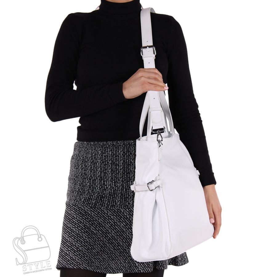 Удобная сумка, выполнена из натуральной кожи. Декорирована застежками по бокам. Дополнена серебристой фурнитурой. Данная модель закрывается на молнию. Каркас мягкий. Носится через плечо или в руке за ручки. В комплекте тонкий ремень с регулировкой длины.