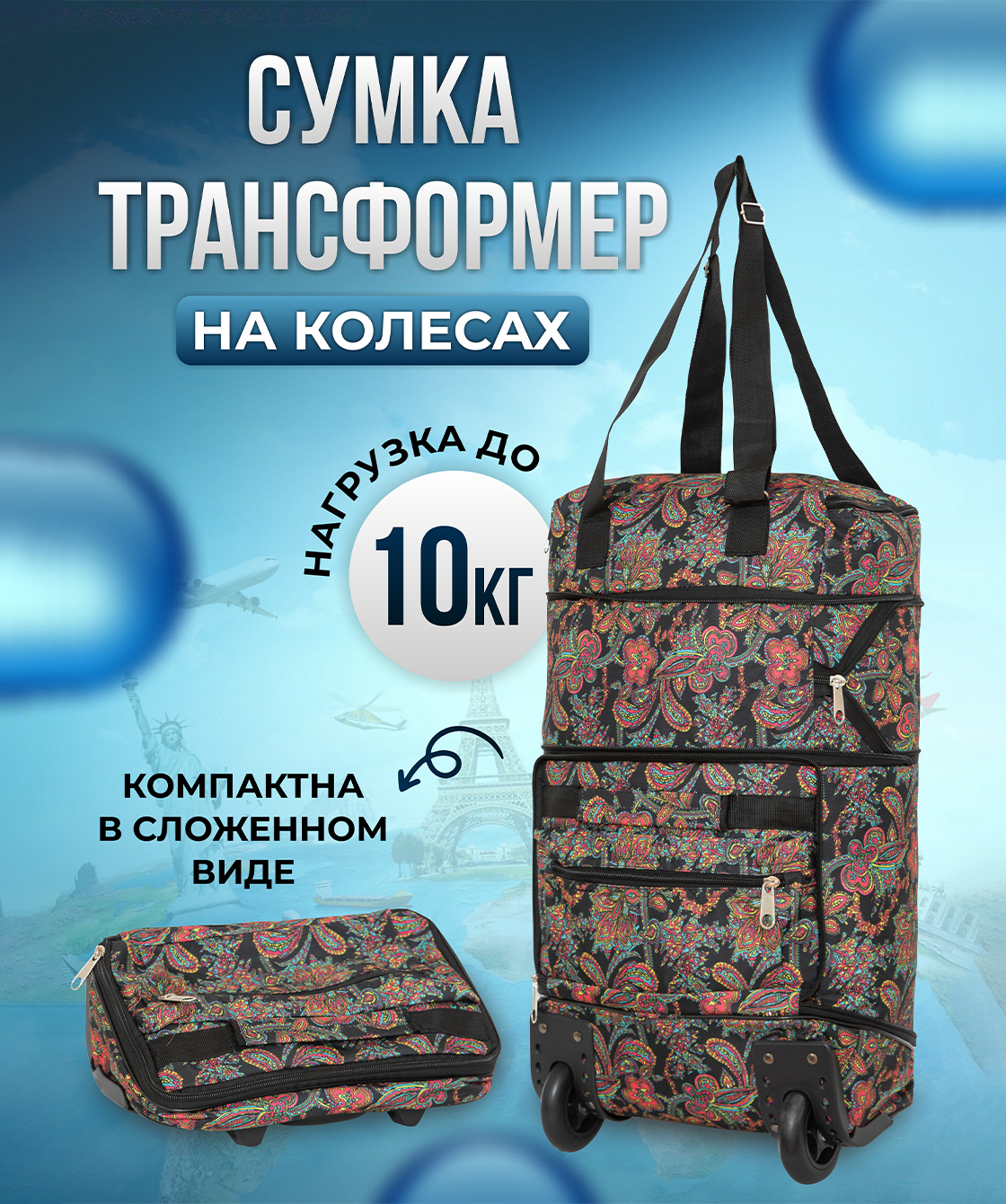 — Сумка оснащена двумя полиуретановыми колесами на скользящих подшипниках, которые создают бесшумное скольжение.