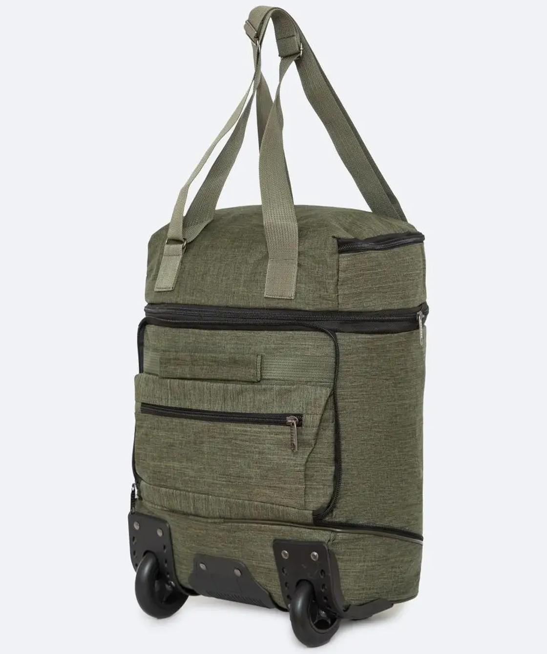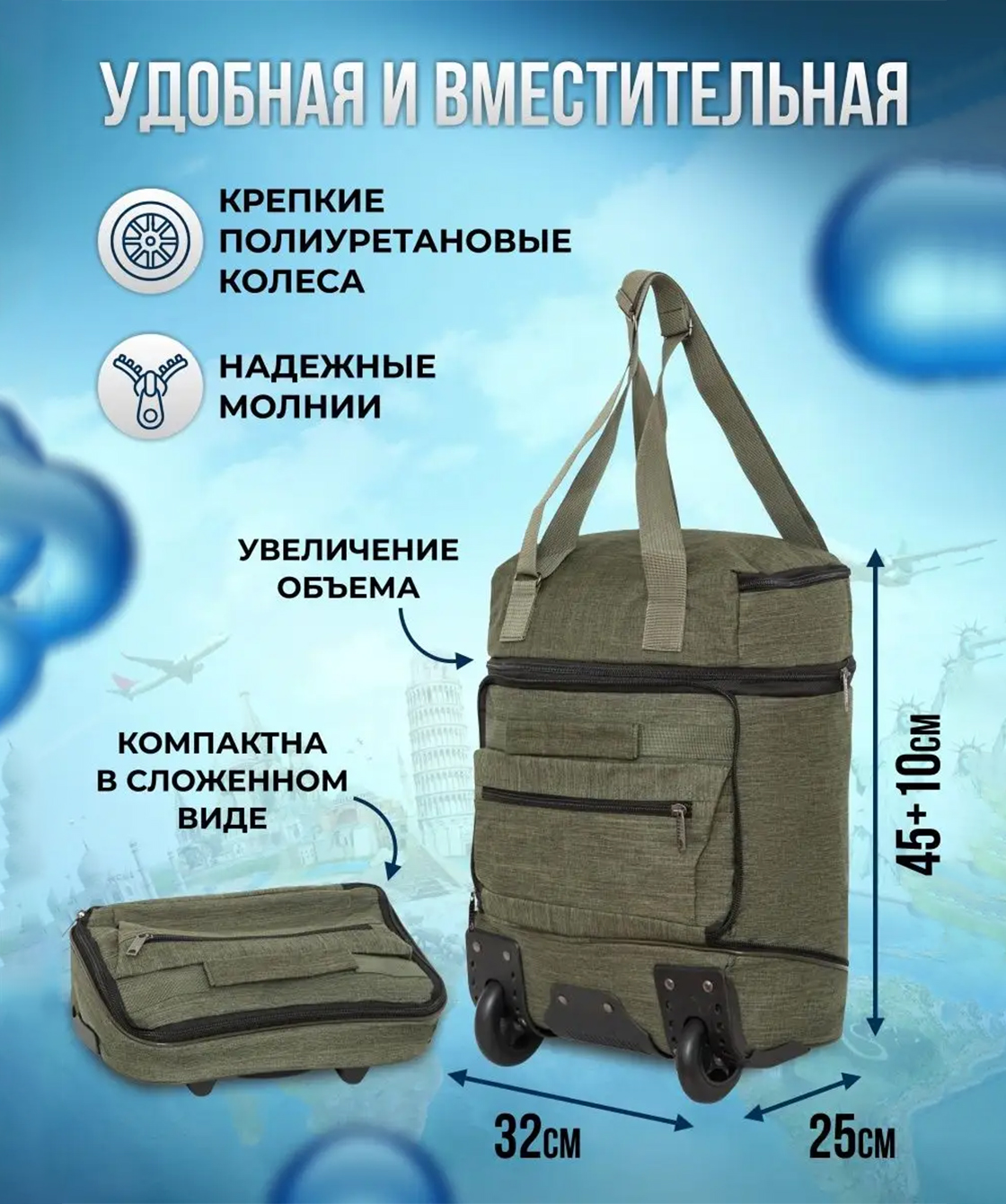 — Сумка оснащена двумя полиуретановыми колесами на скользящих подшипниках, которые создают бесшумное скольжение.