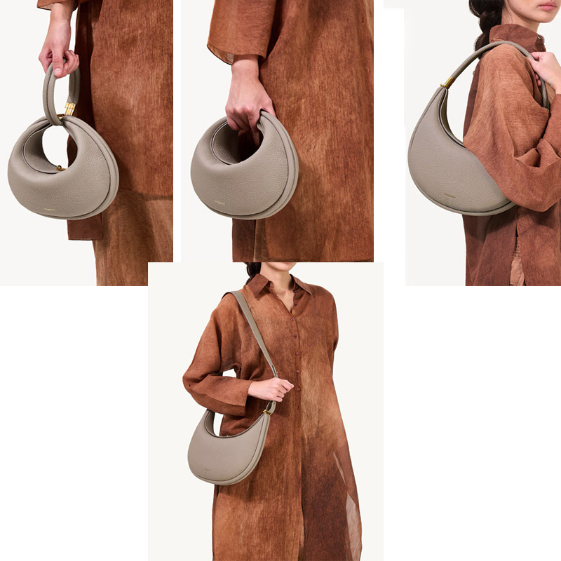 Классическая форма "полумесяц" — при удлинённой ручке сумка выглядит как элегантная hobo bag, которую можно носить на плече или в руке.