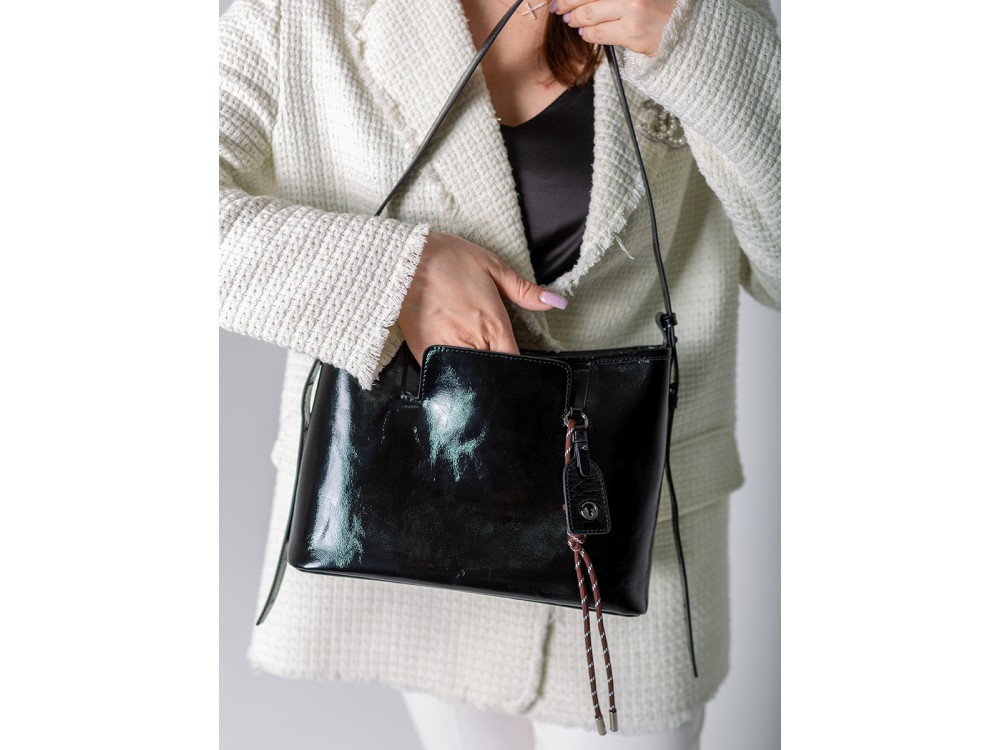 Сумка шоппер с регуриемой ручкой. . Внутри: два отделения, между ними перегородка в виде кармана на молнии. Дополнительно два кармана для аксессуаров, один из которых застегивается на молнию.