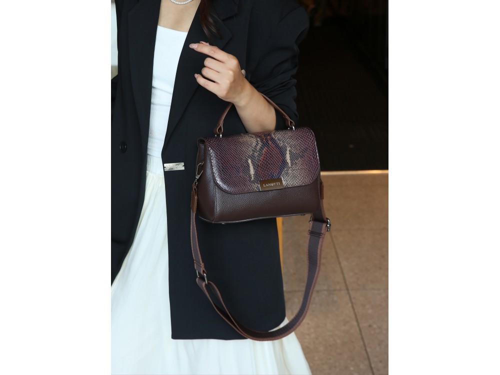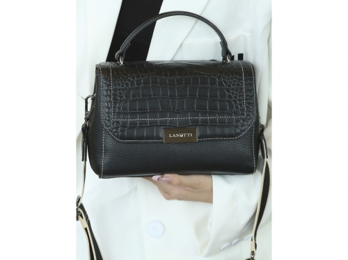 Сумка женская кожаная черная – это элегантно, стильно и удобно. Она позволит держать все важные и нужные вещи под рукой и в безопасности. Вашему вниманию представлена сумка в модном дизайне и по привлекательной цене. Сумка кросс-боди с контрастной коричневой ручкой является трендом осени 2023 года. Именно поэтому она обязана быть в гардеробе каждой модницы. Стильный деловой аксессуар придаст вашему повседневному или торжественному образу особый шарм и изысканность. Сумочка легкая, компактная, но при этом вместительная. Все самое необходимое поместится и в этой модели. Представленная кросс-боди имеет одно просторное отделение и два кармана внутри – открытый и на молнии. Такая женская сумочка из натуральной кожи пригодится на прогулке, в путешествии, для выхода в кино или ресторан. Она так же гармонично смотрится с вечерним платьем, строгим костюмом или молодежным луком. Дизайнерские стильные модели абсолютно все выглядят солидно и респектабельно. Деловой портфель пошит аккуратно и просто, не имеет изъянов. Cross-body изготовлена из мягкой, но прочной натуральной кожи. Благодаря этому она прослужит вам не один сезон и всегда будет выглядеть как новая. Модель не боится дождя, снега, палящего солнца. Берите ее с собой в любую погоду! Классическая, базовая, элегантная кросс-боди бренда Lanotti представлена в черном, зеленом и цвете слоновая кость. Стильные тоут выполнена из натуральной кожи, которая хорошо держит форму. Прекрасно подходит для повседневной носки, в офис, школу, на свадьбу или свидание. Бренд Lannotti следит за новинками главных модных домов Европы и Азии , чтобы наши покупатели имели возможность приобрести экземпляры не уступающие по стилю и качеству Hermes Furla Fendi Dr. Koffer Christian Dior Louis Vuitton Guess Zanellato Michael Kors Cromia Gucci Prada Bottega Veneta Marc Jacobs Chanel.Если Вы цените качество других российских производителей то бренд Lanotti Вас порадует.