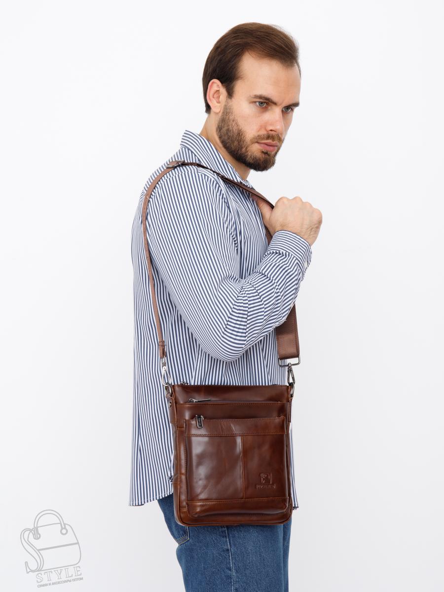 Сумка мужская кожаная 1022-2 brown Fuzhiniao в Новосибирске