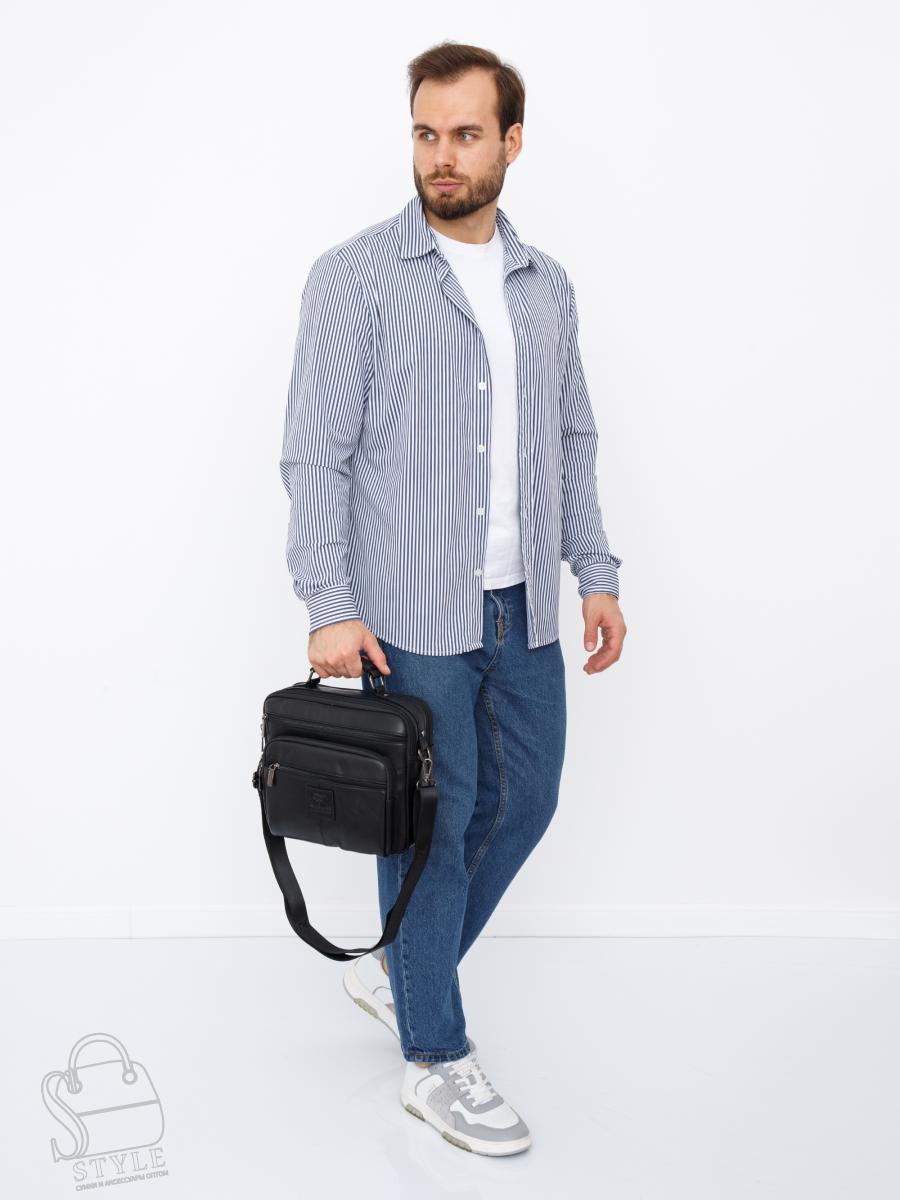 Сумка мужская кожаная 608M black Fuzhiniao в Новосибирске