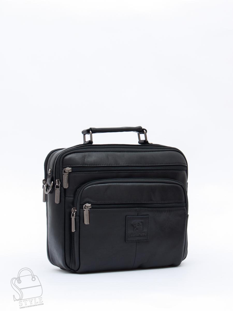 Удобная мужская сумка, выполнена из натуральной кожи.  Дополнена темной фурнитурой. Данная модель закрывается на молнии, носится на плече или через плечо с помощью съемного ремня. Каркас полужесткий.