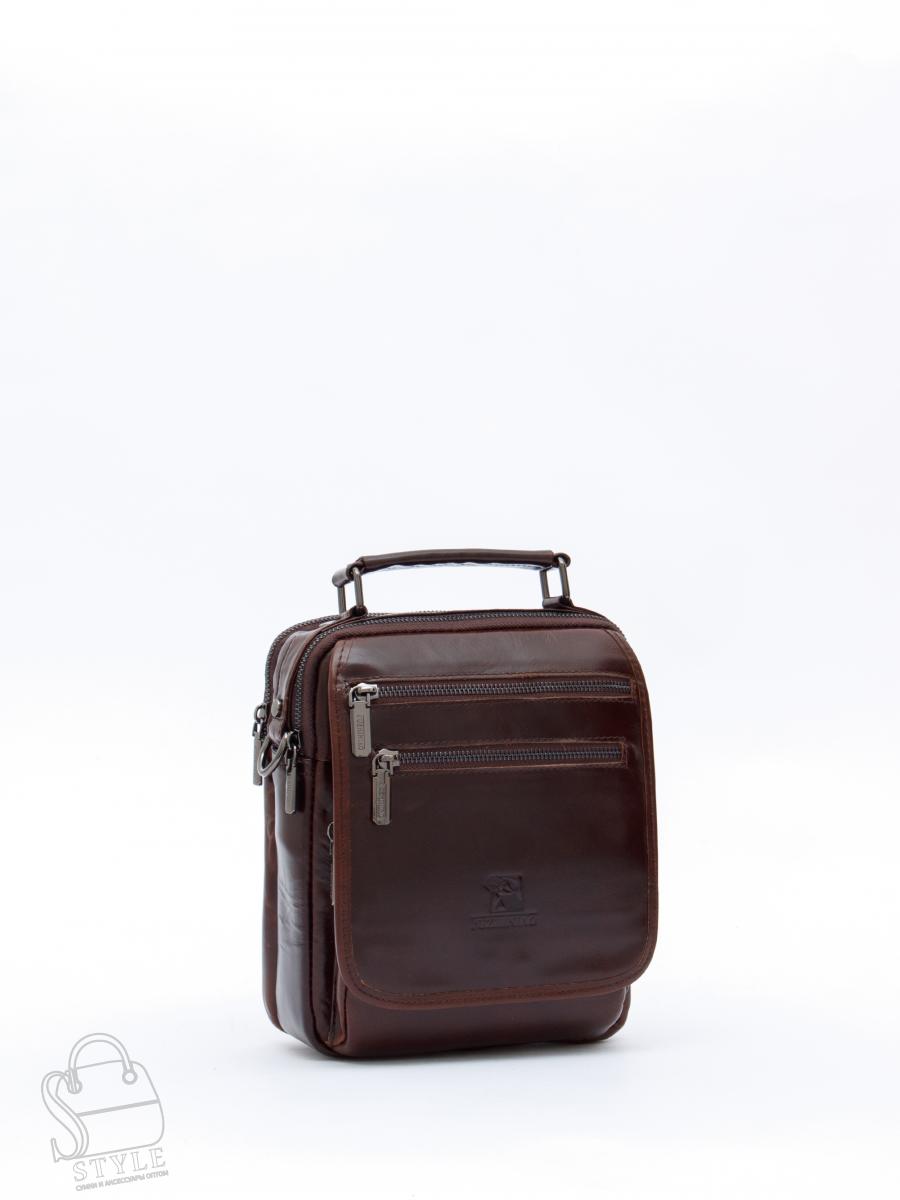 Удобная мужская сумка, выполнена из натуральной кожи.  Дополнена темной фурнитурой. Данная модель закрывается на молнию, носится на плече или через плечо с помощью съемного ремня. Каркас полужесткий.
