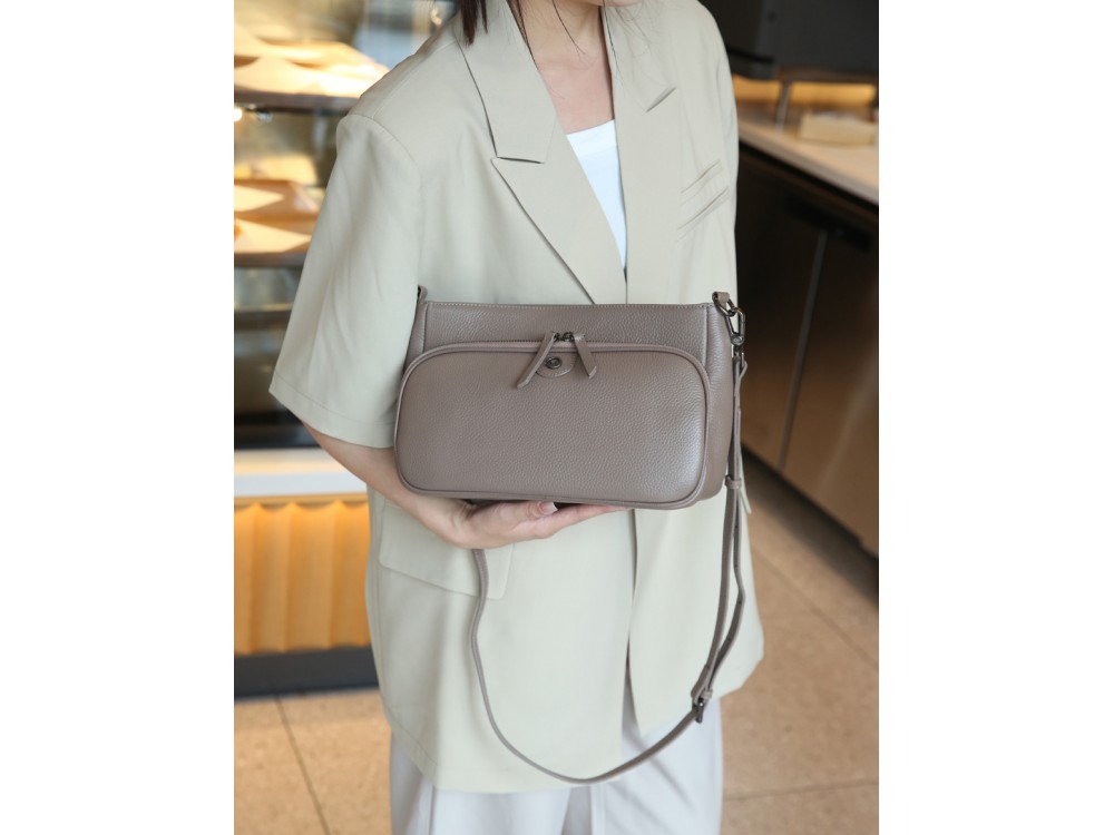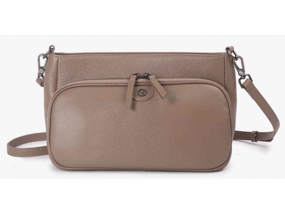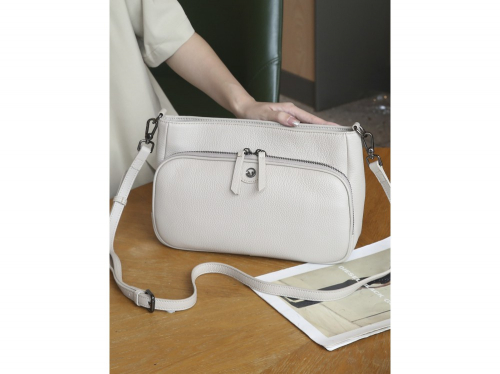 Сумка женская из натуральной кожи с регулируемым ремнём. Данная модель совмещает в себе сумку и кошелёк одновремено. В одной части сумки 2 основных отделения, которые заделяет дополнительное отделение на молнии, так же есть карманы для мелочей. Во 2 части сумки, которая в форме клатча, 2 основных оделения, которые разделяются дополнительным отделением на молнии, так же есть карманы для банковских карт и мелочей.
