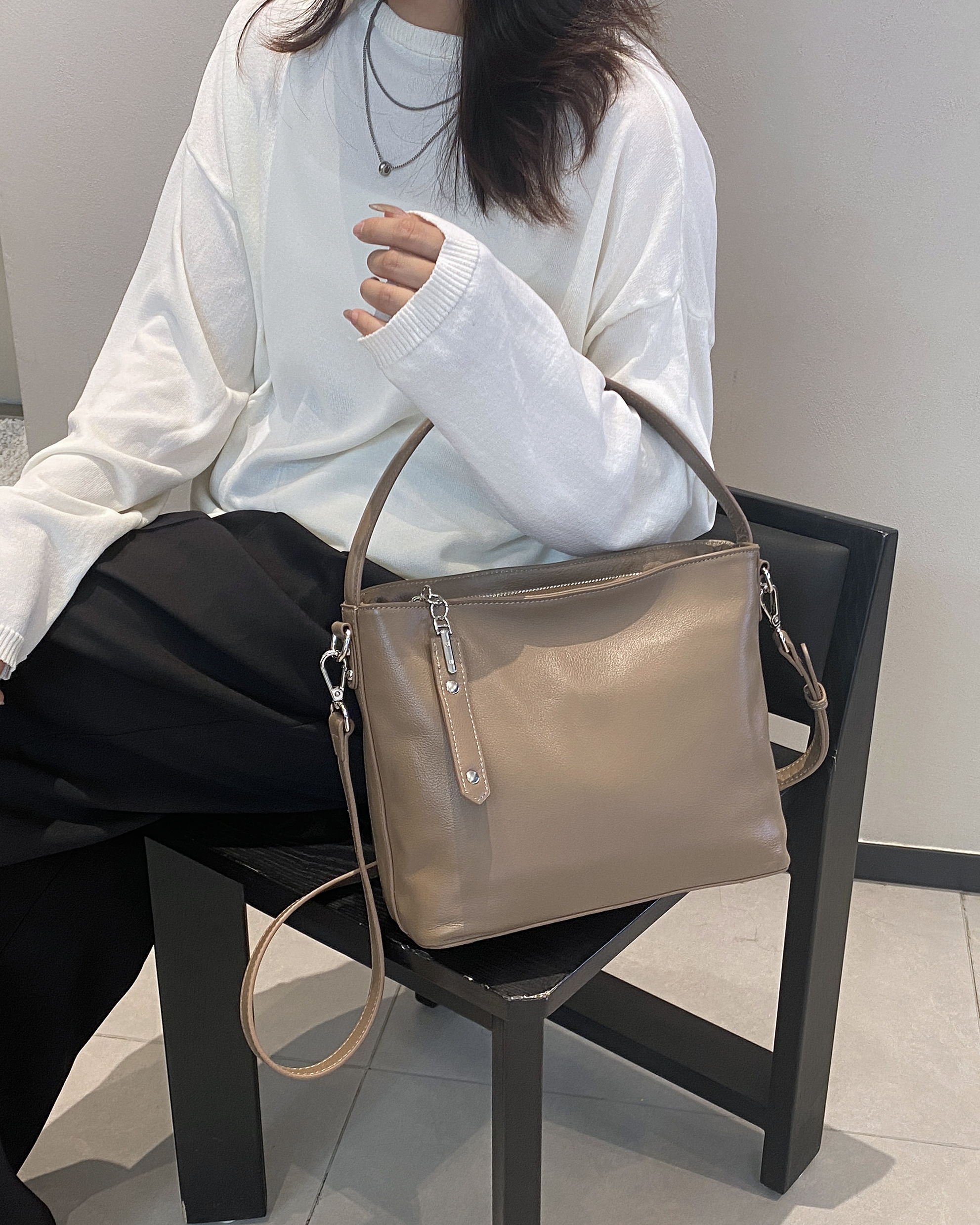 Описание: сумка из натуральной кожи на одной короткой ручке, кожаный длинный ремень в комплекте.