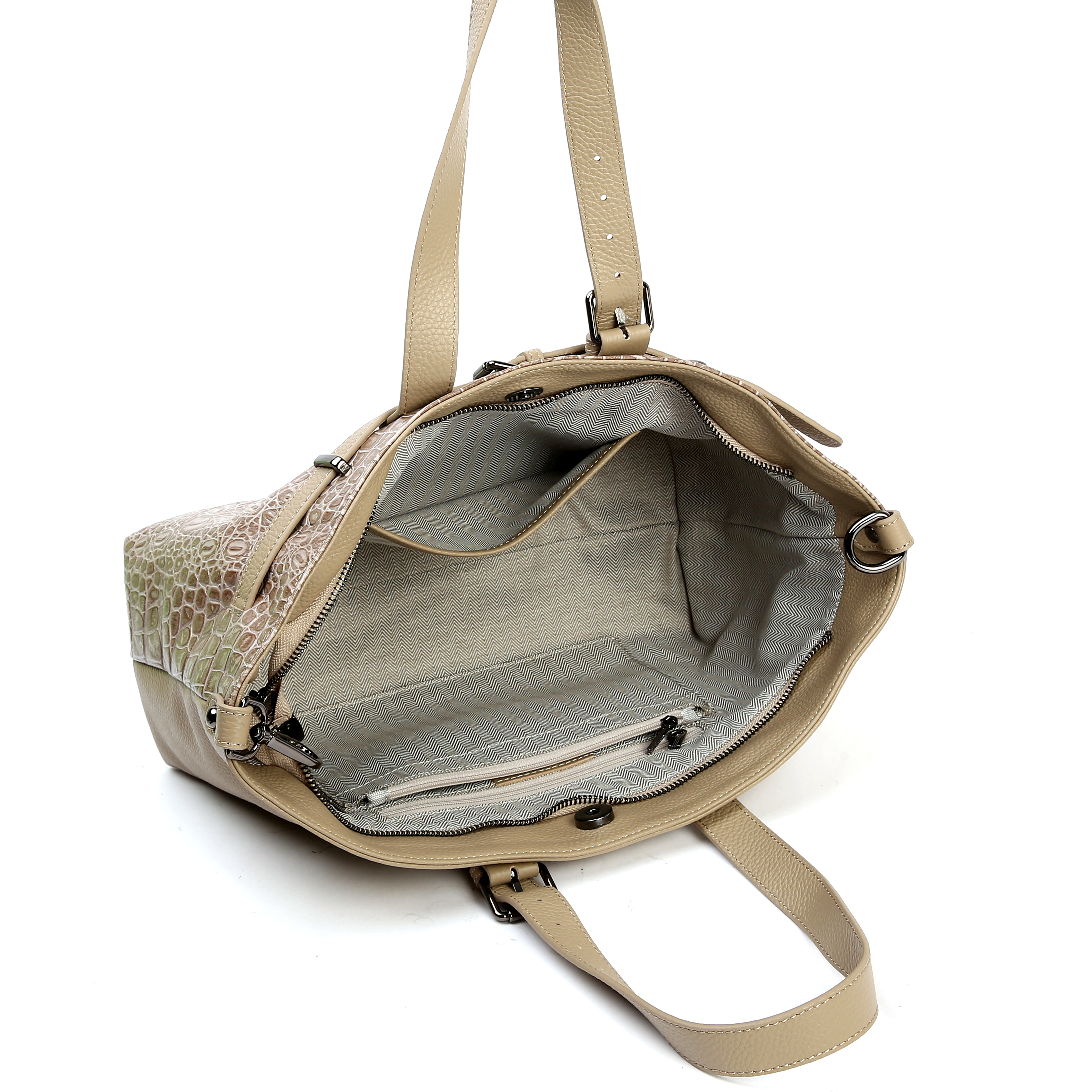 Сумка оснащена двумя регулируемыми ручками , а также длинным регулируемым ремнем, позволяющим носить сумку на плече или через плечо.