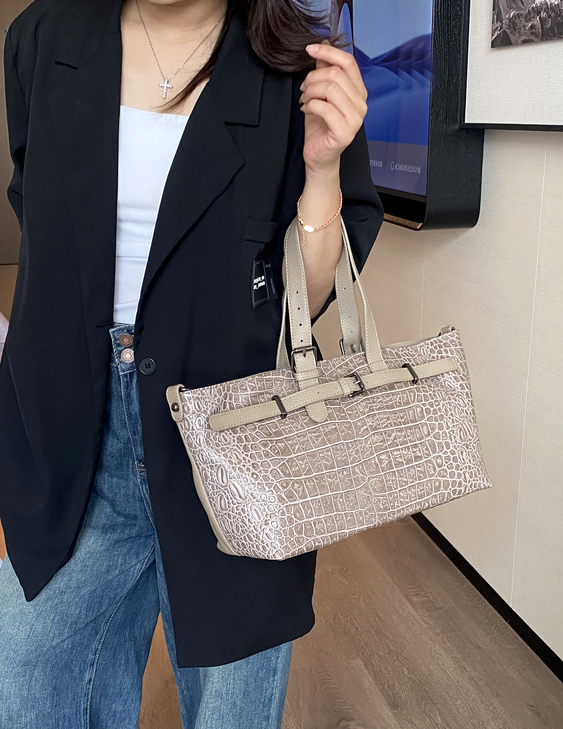 Трансформация формы: Благодаря изящному карабину, расположенному сбоку, вы сможете легко изменить форму сумки, адаптируя ее под ваш образ и настроение.