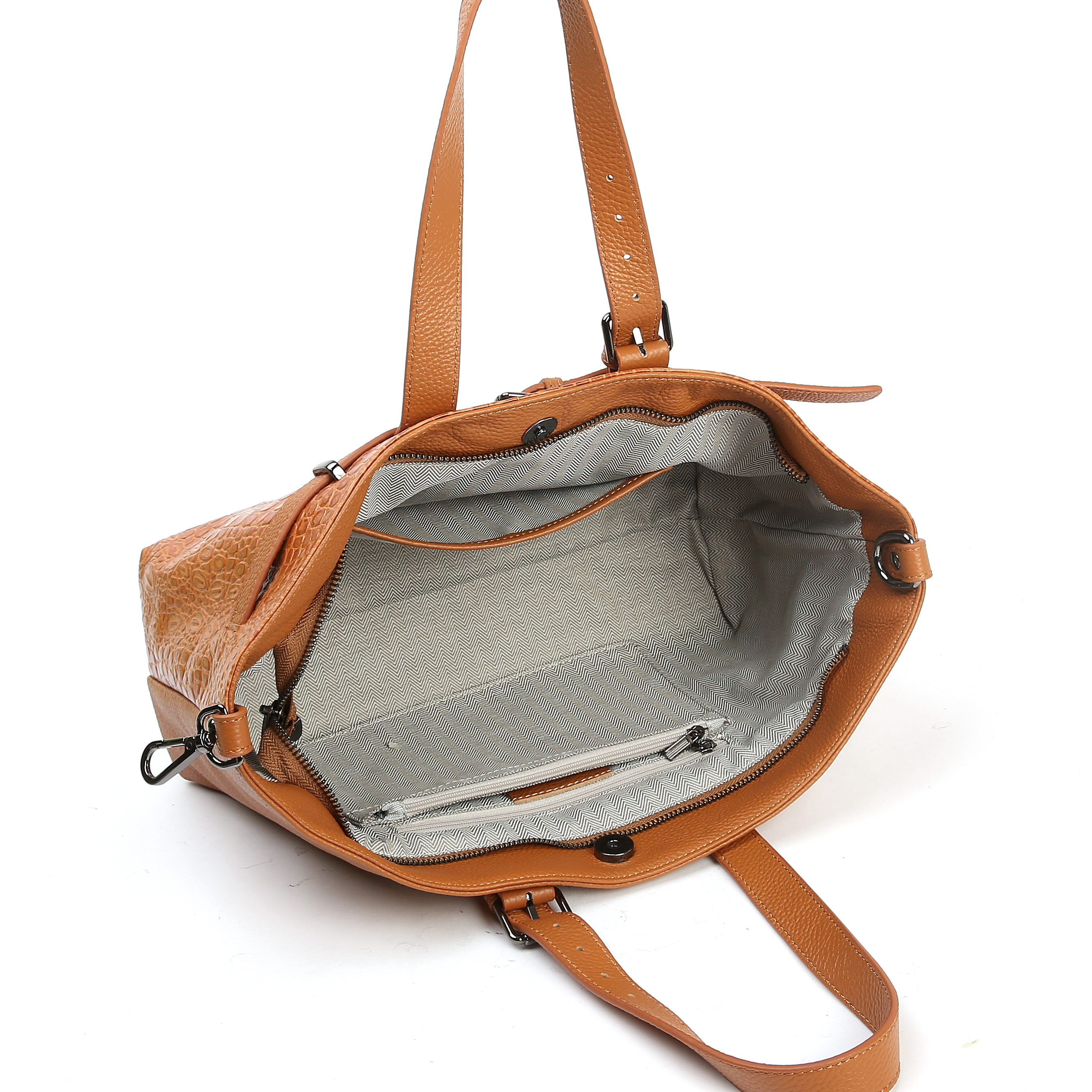 Сумка оснащена двумя регулируемыми ручками , а также длинным регулируемым ремнем, позволяющим носить сумку на плече или через плечо.